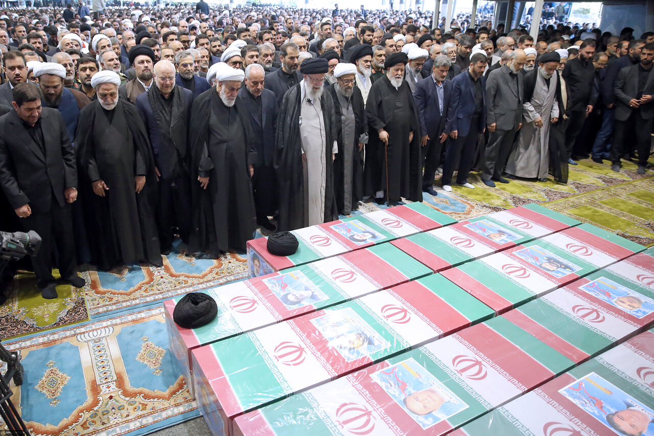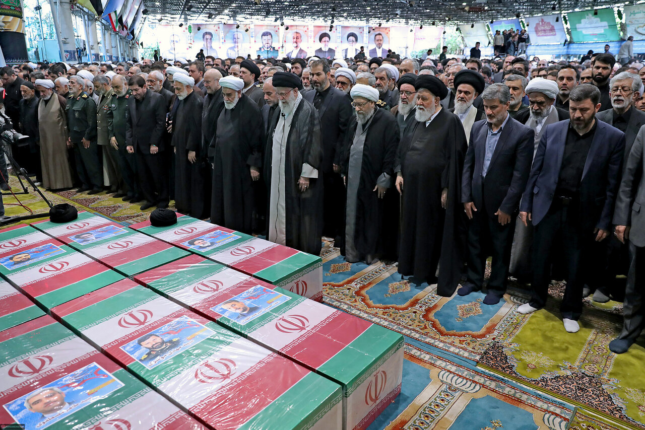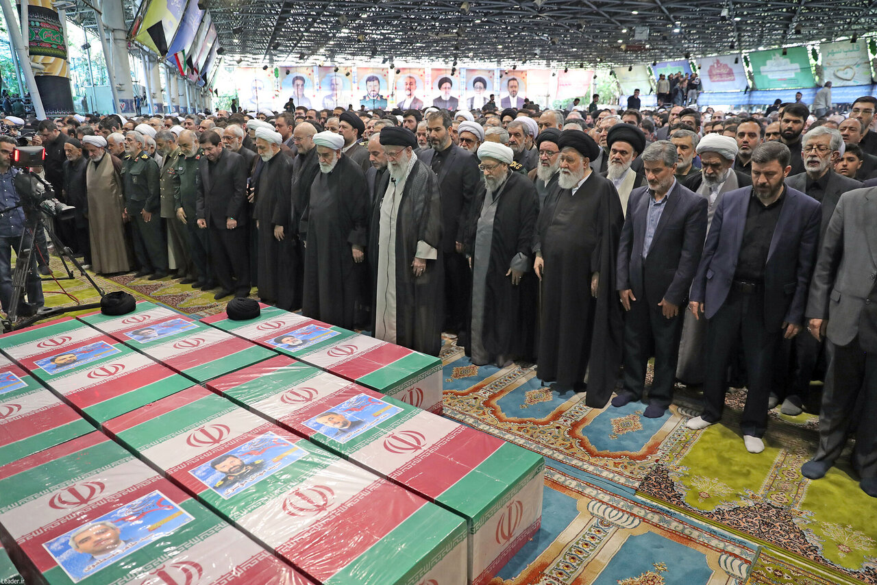 نماز بر پیکر رئیس جمهور شهید آیتالله رئیسی و همراهان ایشان صبح امروز چهارشنبه دوم خرداد توسط حضرت آیتالله خامنهای رهبر معظم انقلاب اقامه شد.