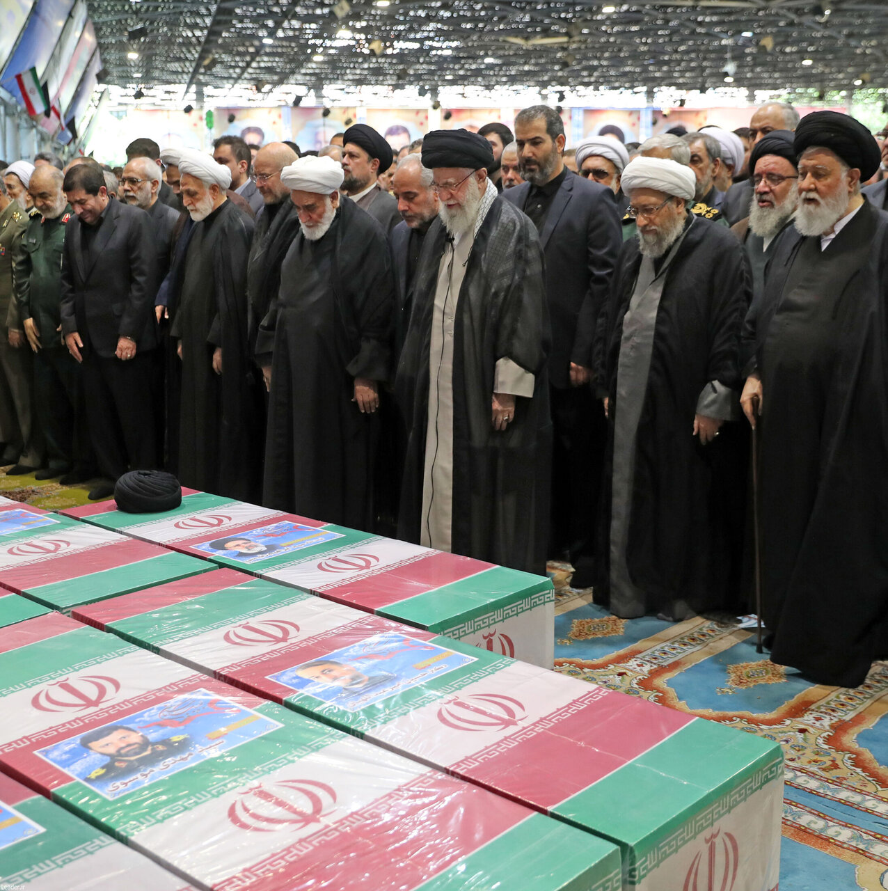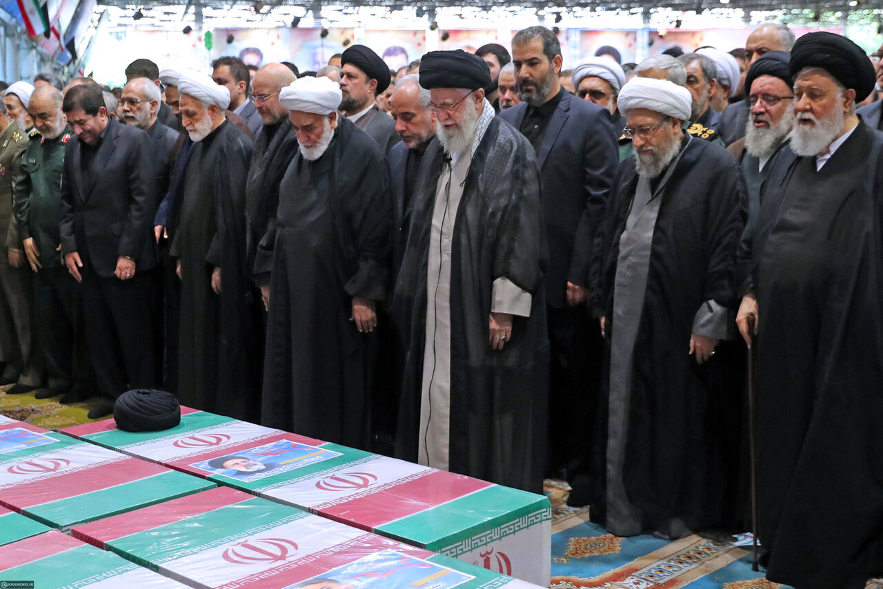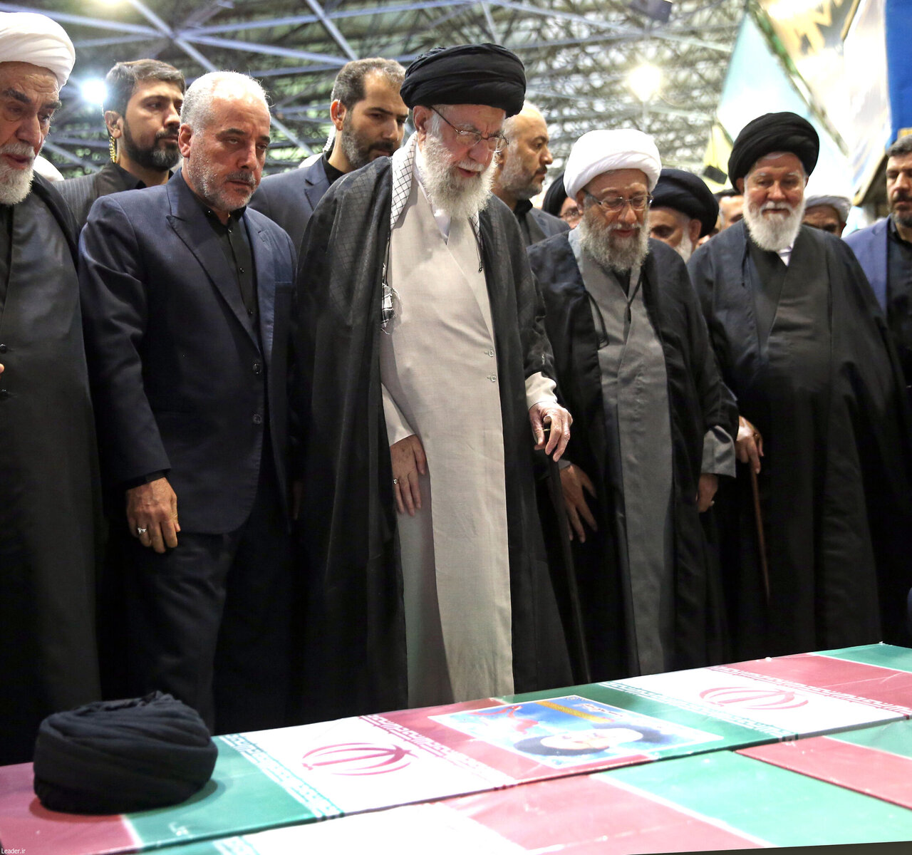 نماز بر پیکر رئیس جمهور شهید آیتالله رئیسی و همراهان ایشان صبح امروز چهارشنبه دوم خرداد توسط حضرت آیتالله خامنهای رهبر معظم انقلاب اقامه شد.