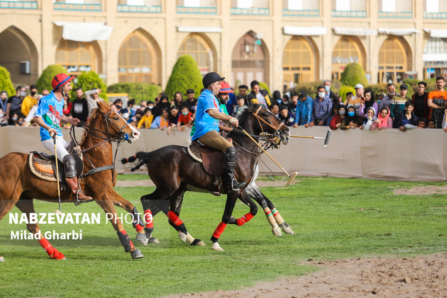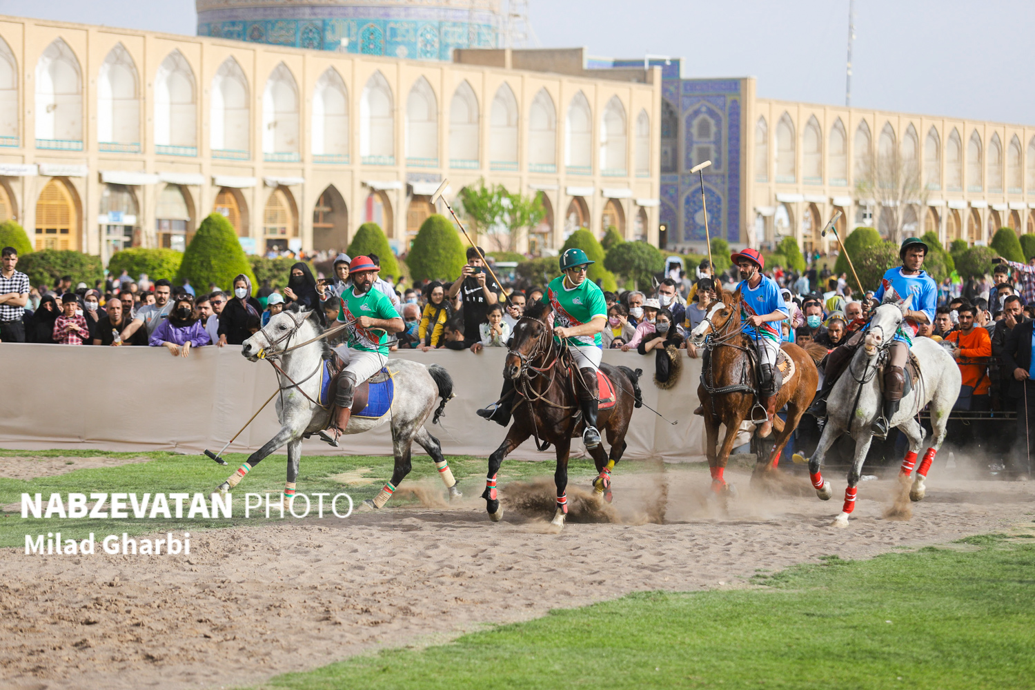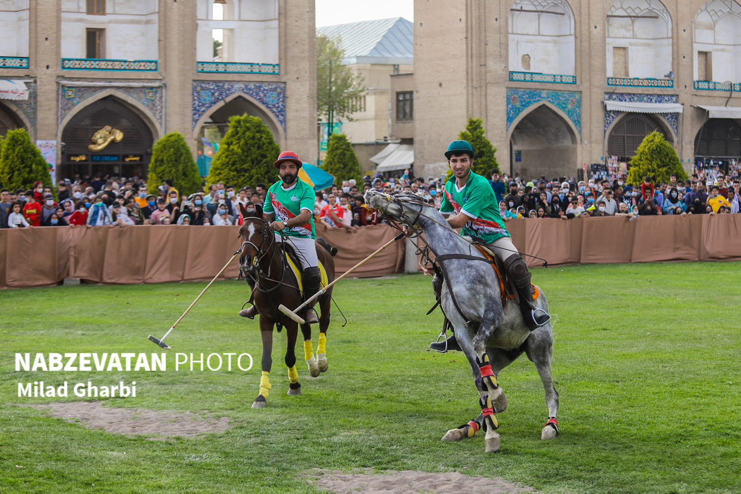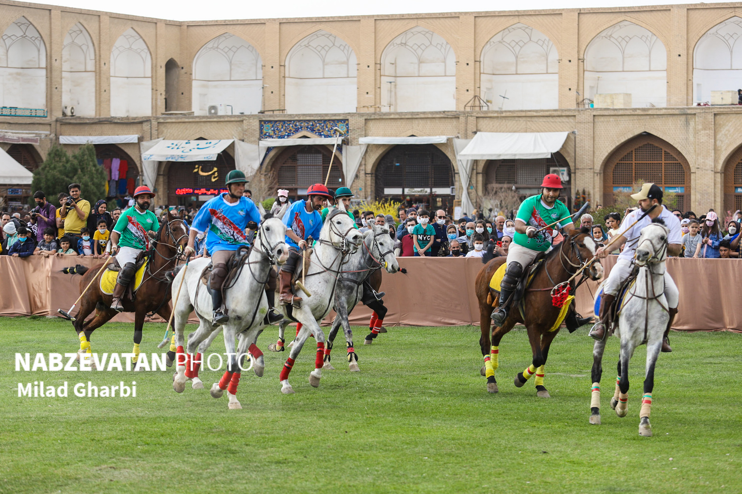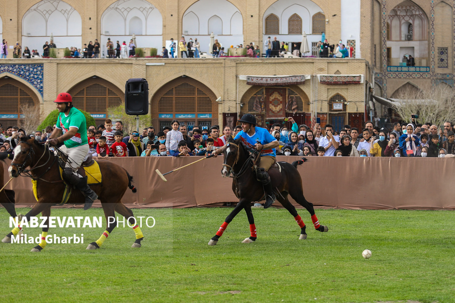 بازی نمادین چوگان همزمان با عید نوروز در میدان تاریخی امام(ره) در حال برگزاری است.میدان نقش جهان قدیمیترین و بزرگترین زمین چوگان دنیا است.