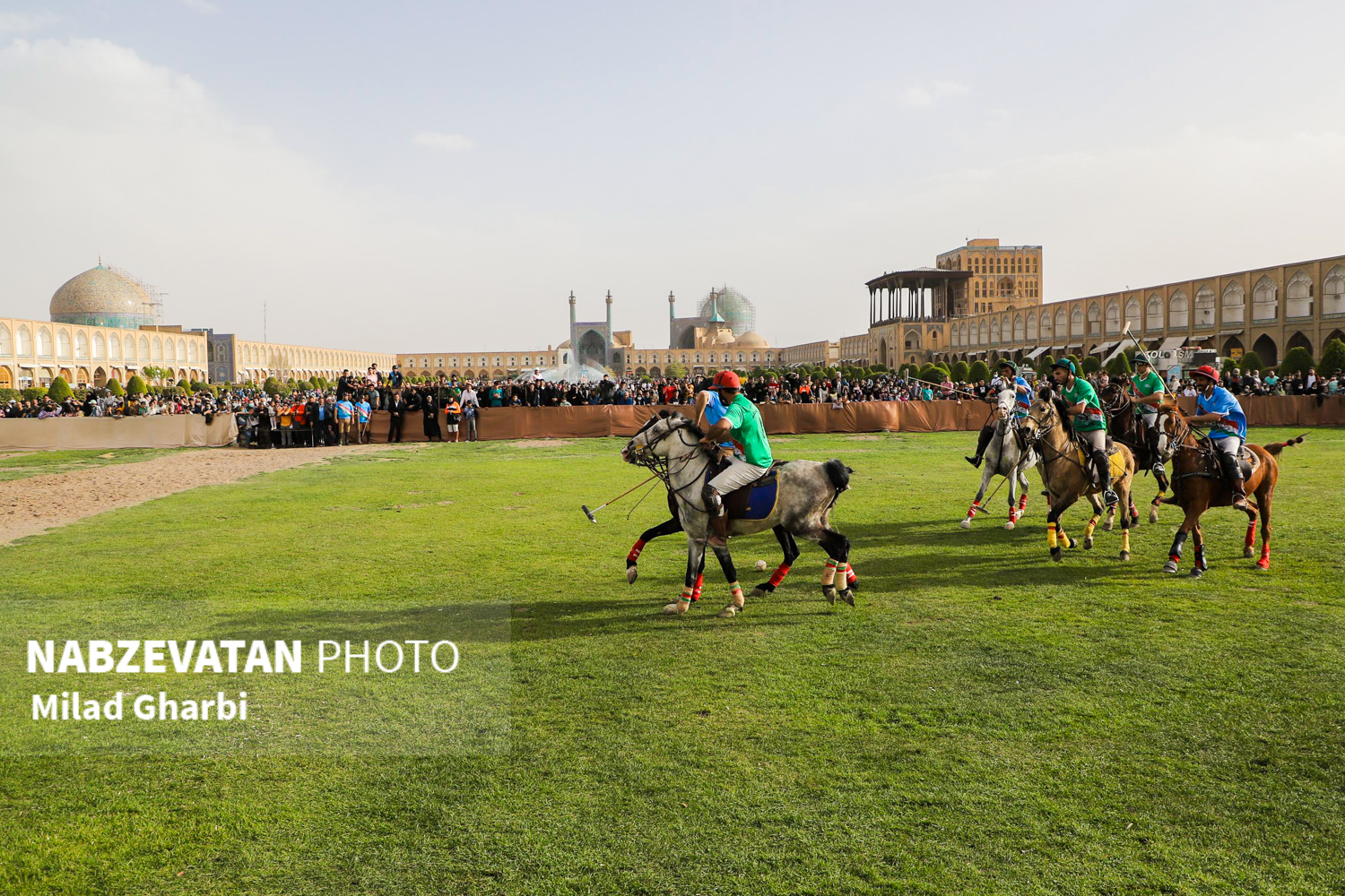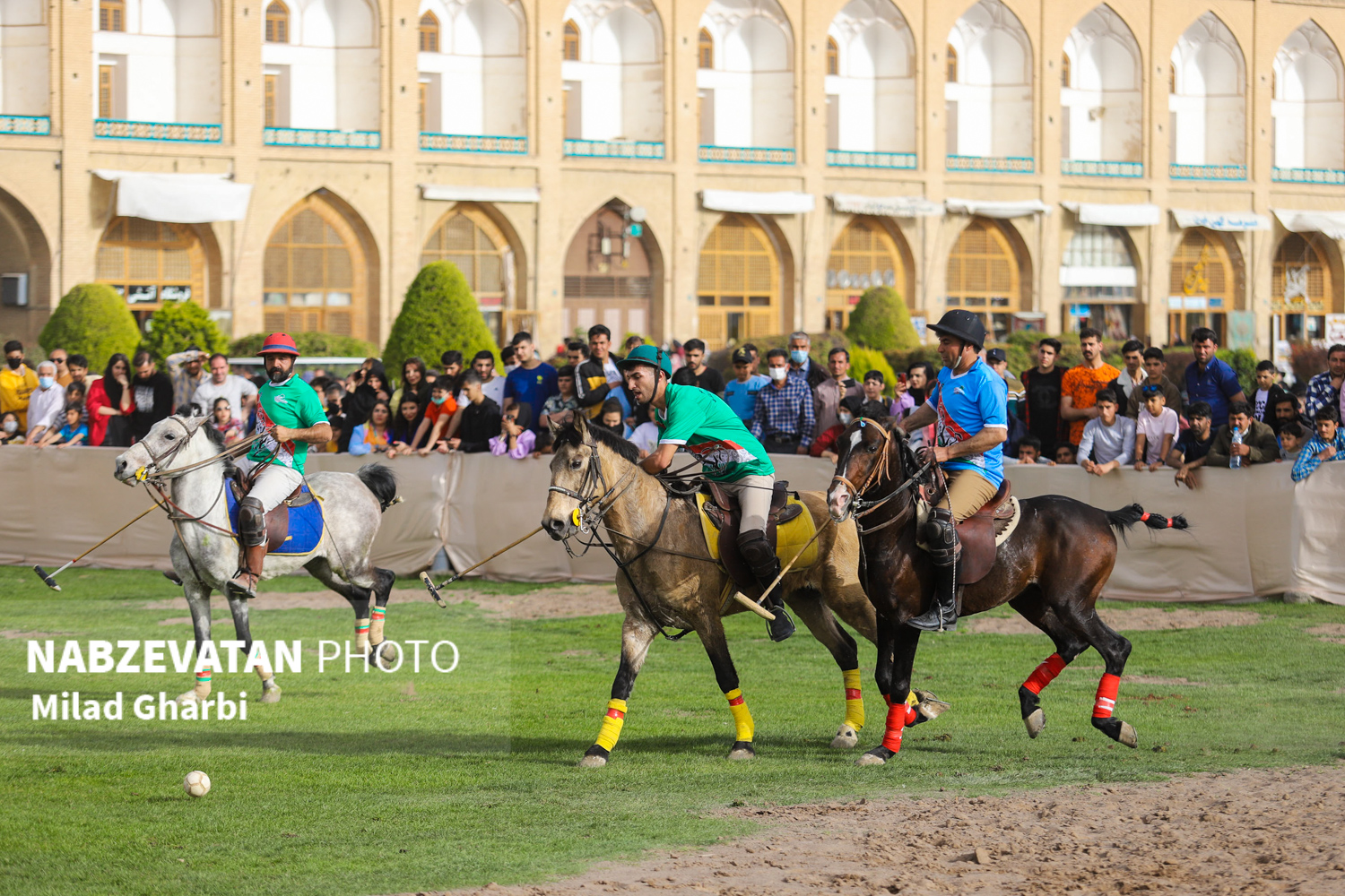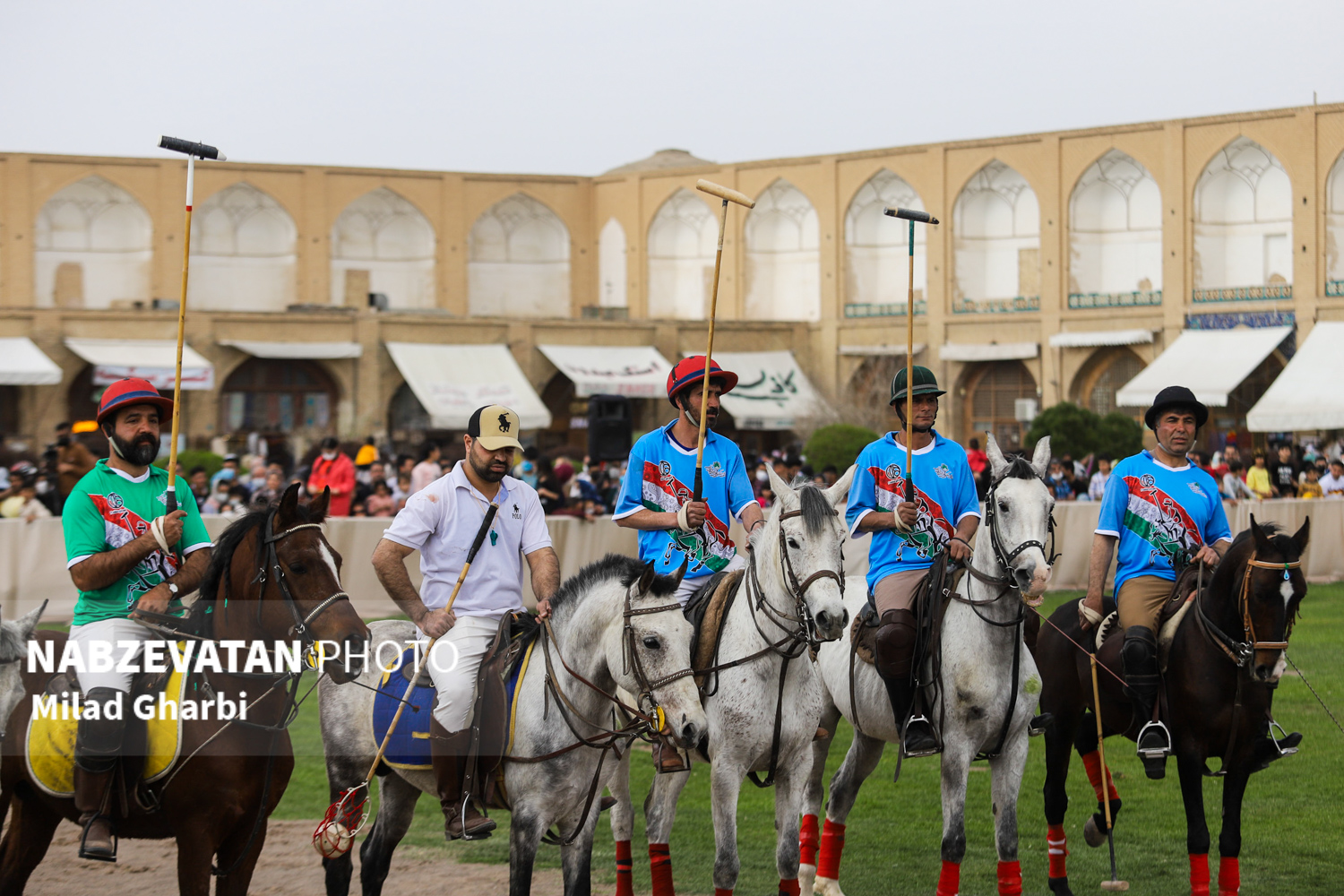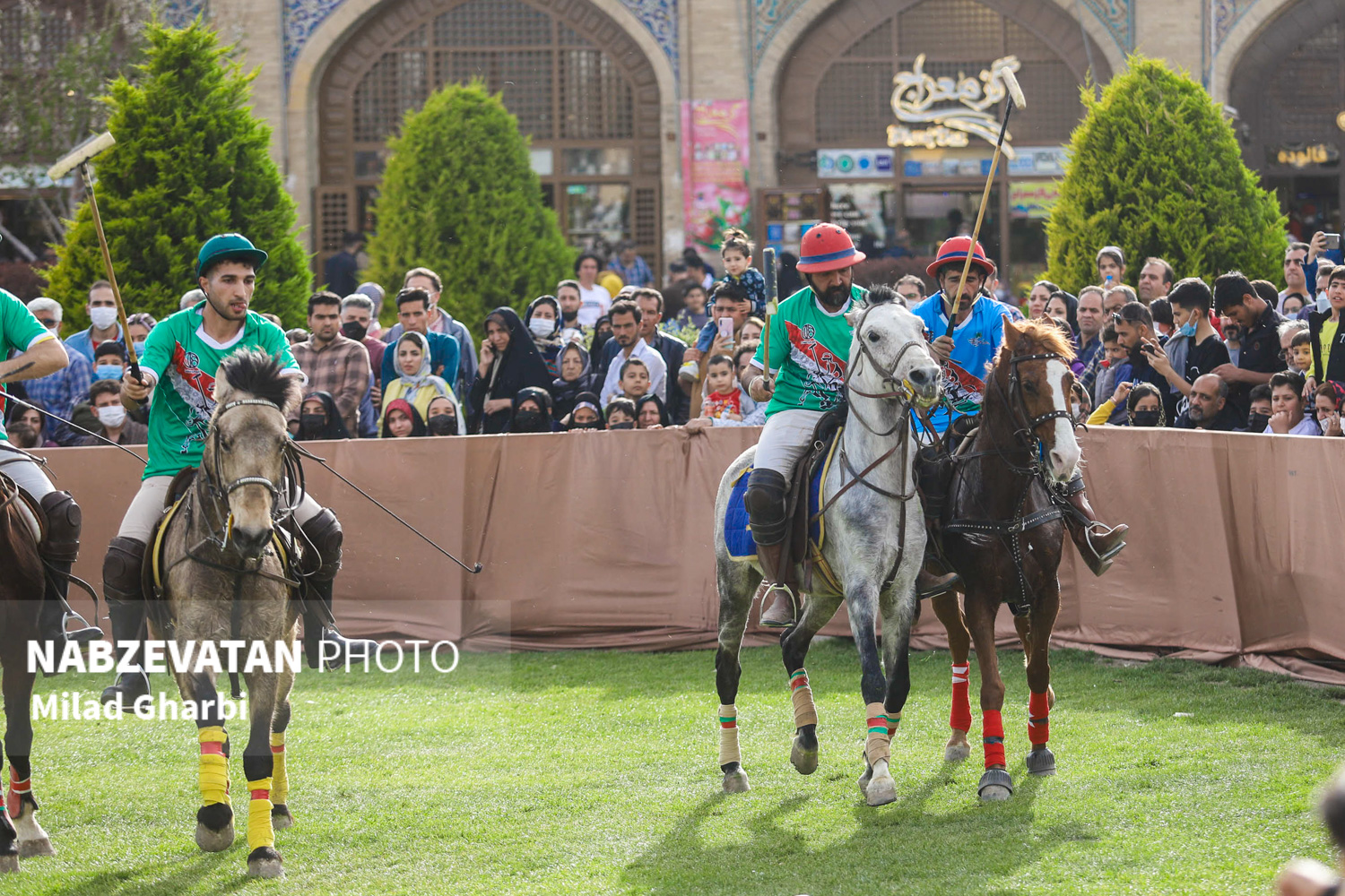 بازی نمادین چوگان همزمان با عید نوروز در میدان تاریخی امام(ره) در حال برگزاری است.میدان نقش جهان قدیمیترین و بزرگترین زمین چوگان دنیا است.