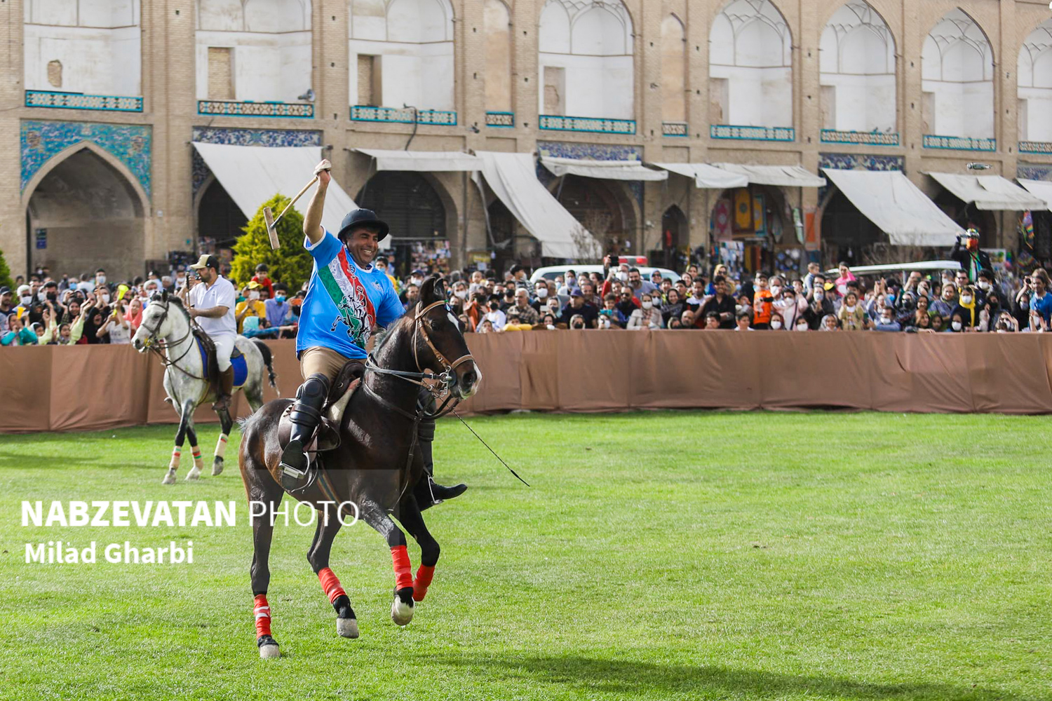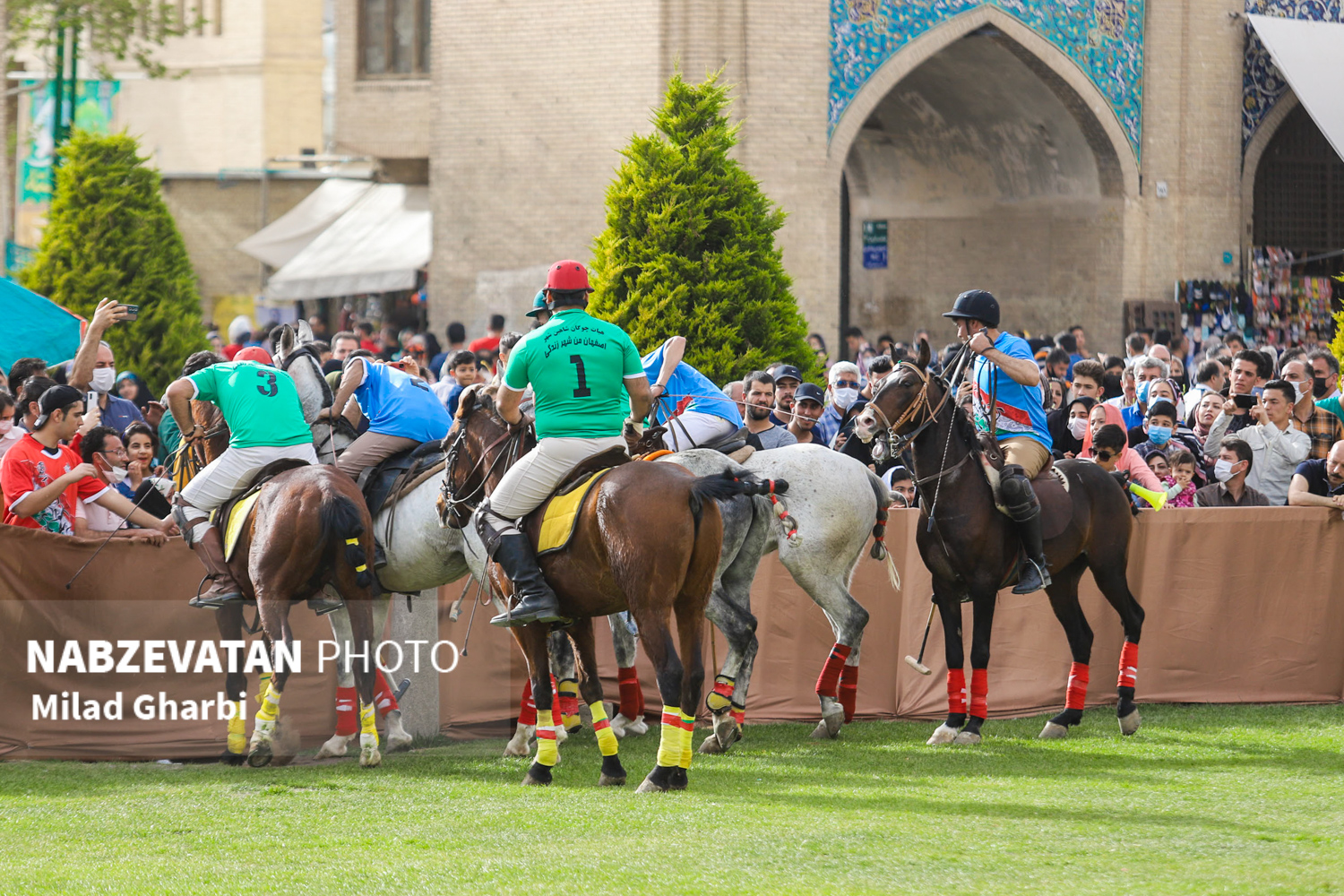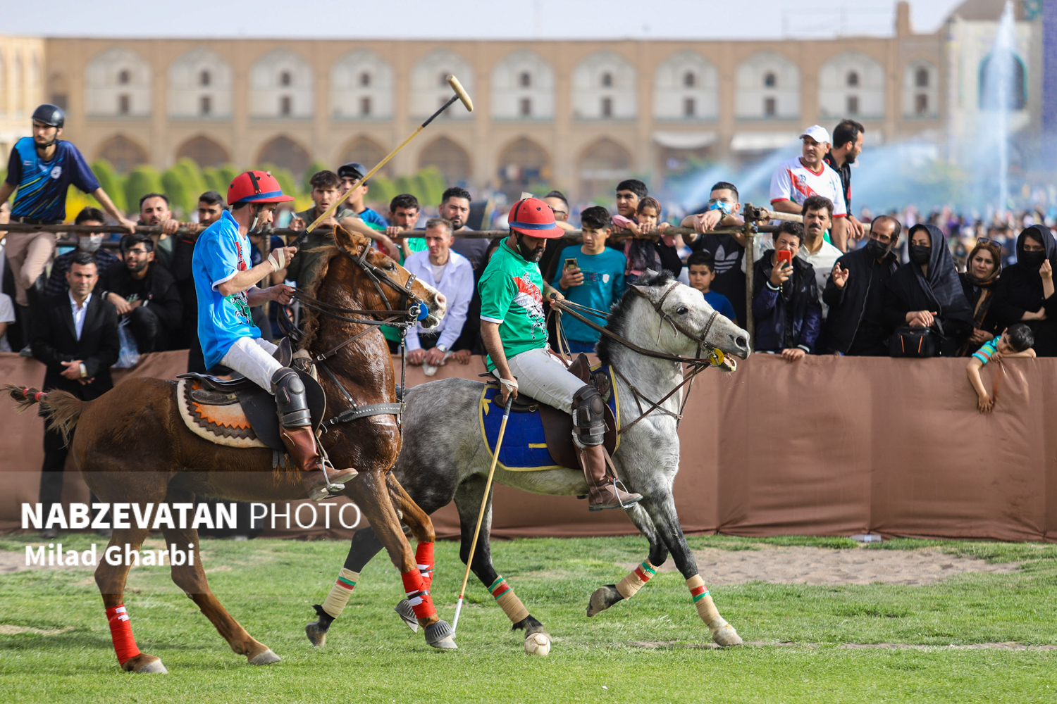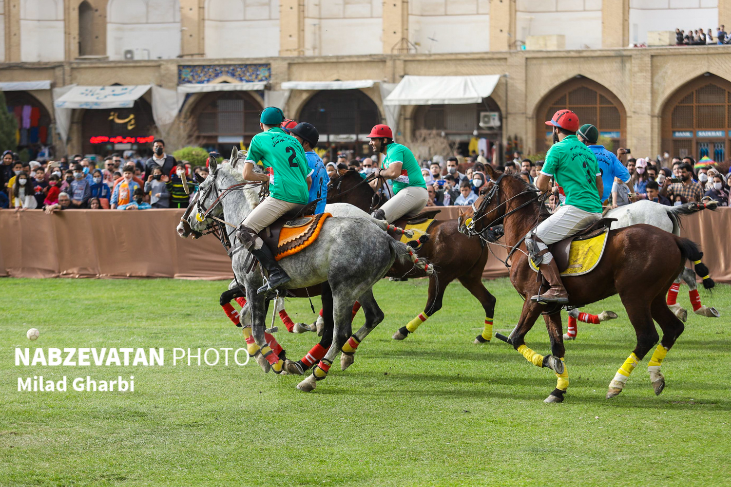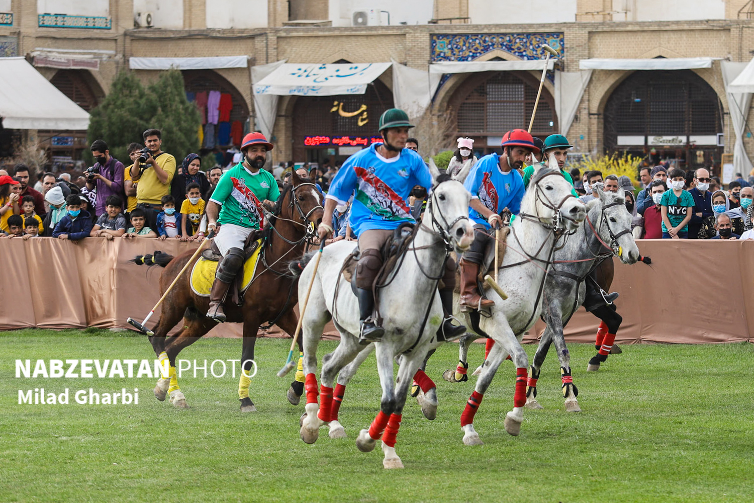 بازی نمادین چوگان همزمان با عید نوروز در میدان تاریخی امام(ره) در حال برگزاری است.میدان نقش جهان قدیمیترین و بزرگترین زمین چوگان دنیا است.
