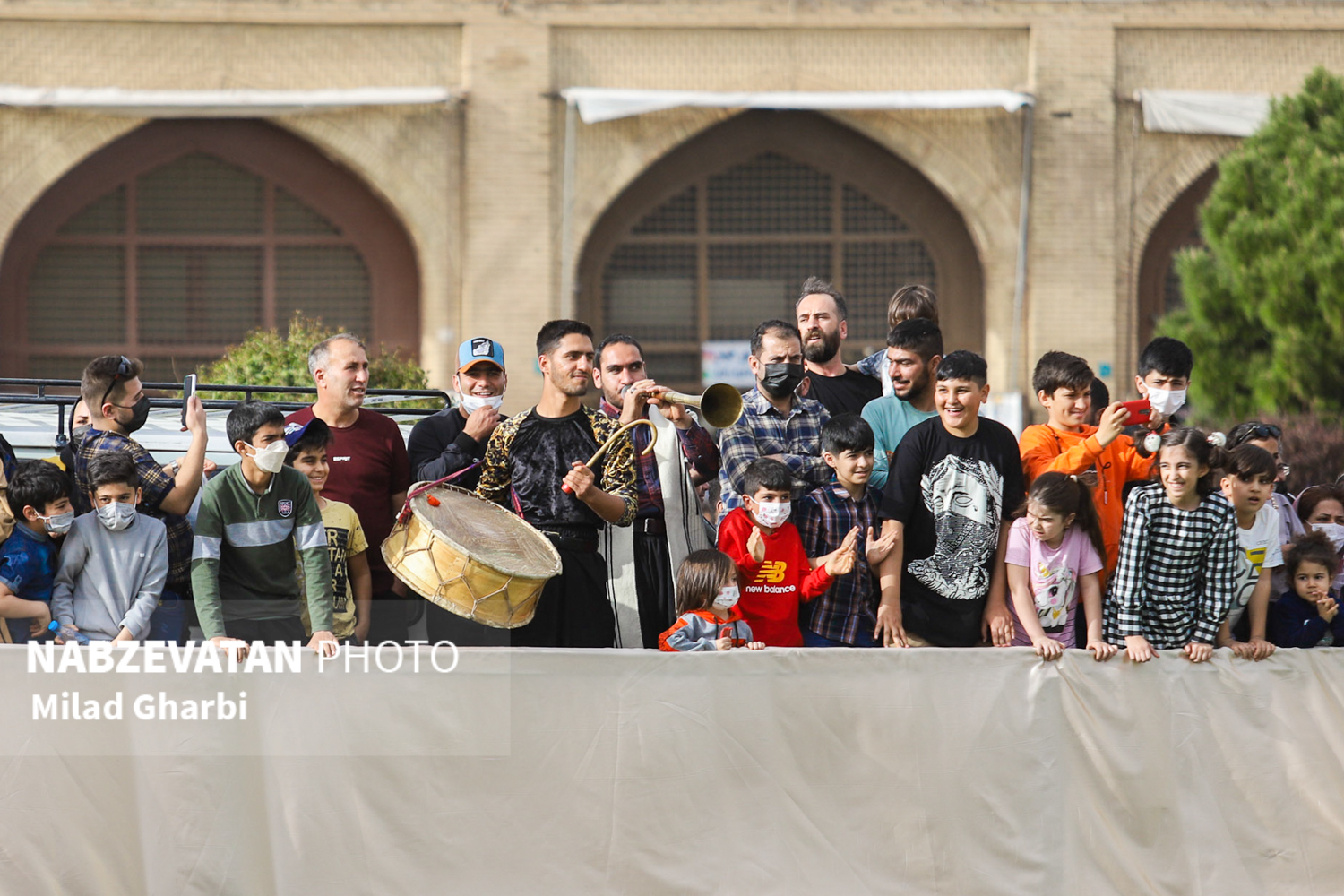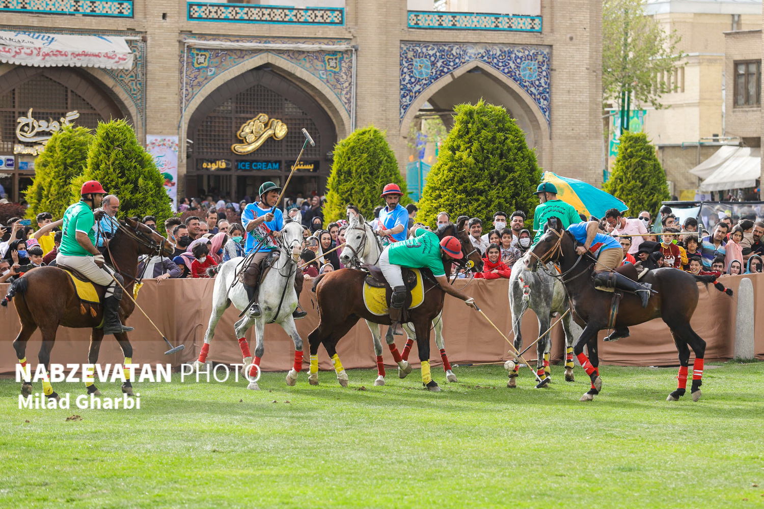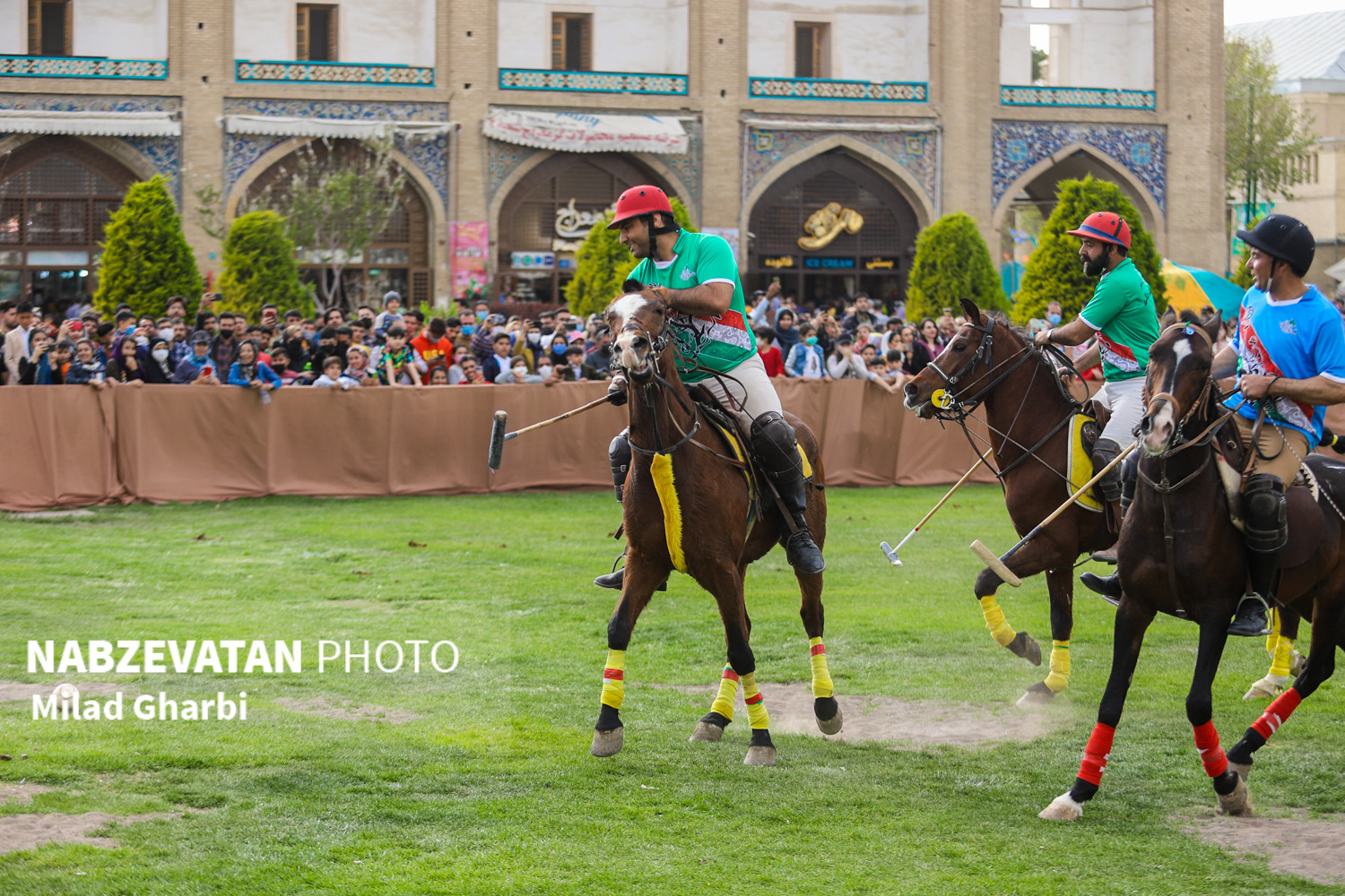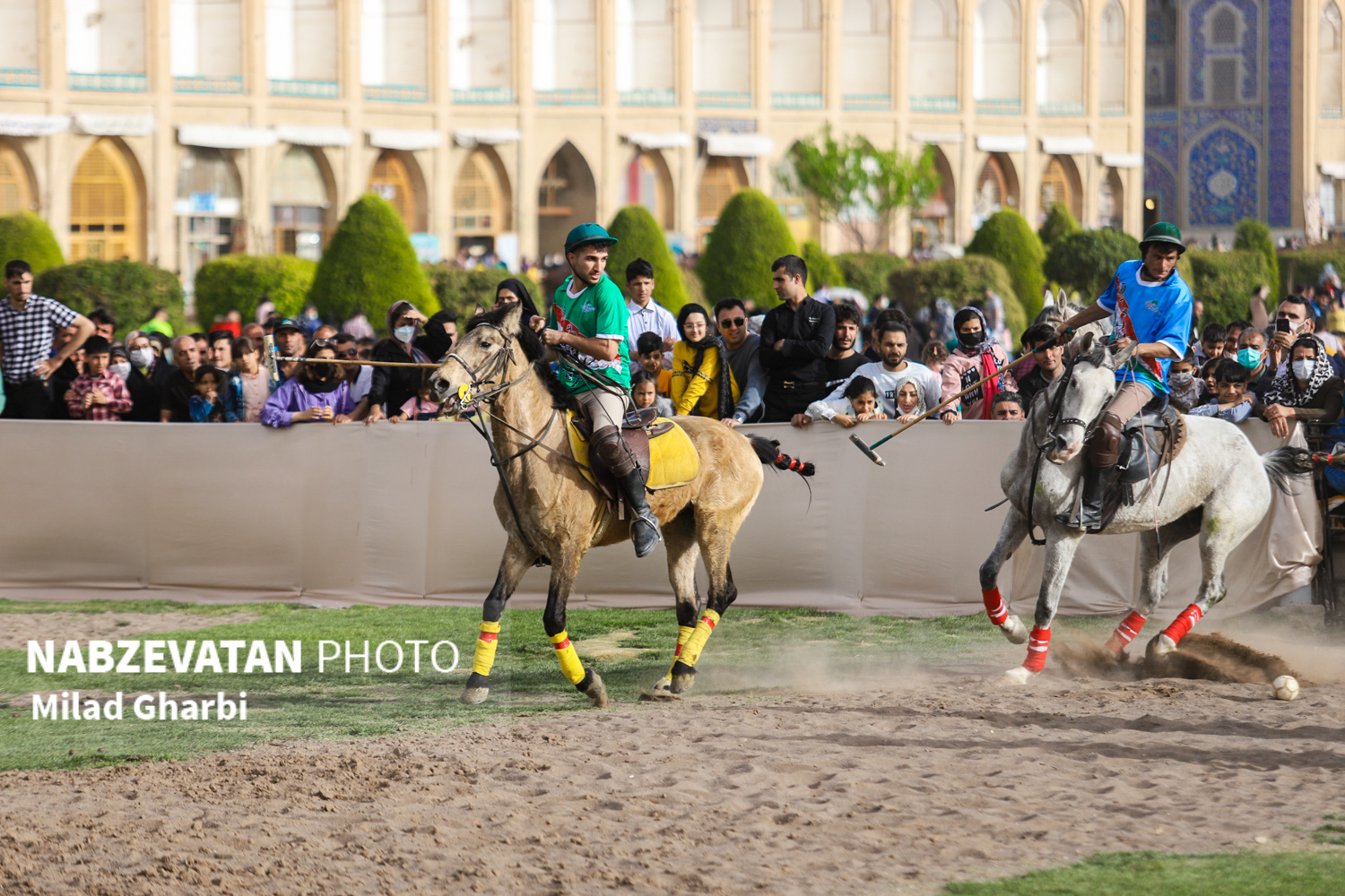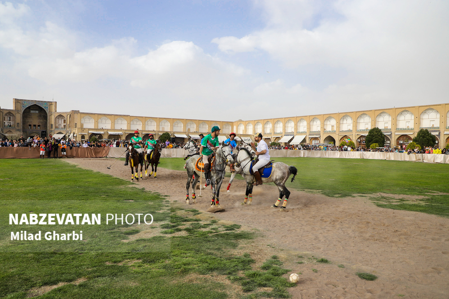 بازی نمادین چوگان همزمان با عید نوروز در میدان تاریخی امام(ره) در حال برگزاری است.میدان نقش جهان قدیمیترین و بزرگترین زمین چوگان دنیا است.