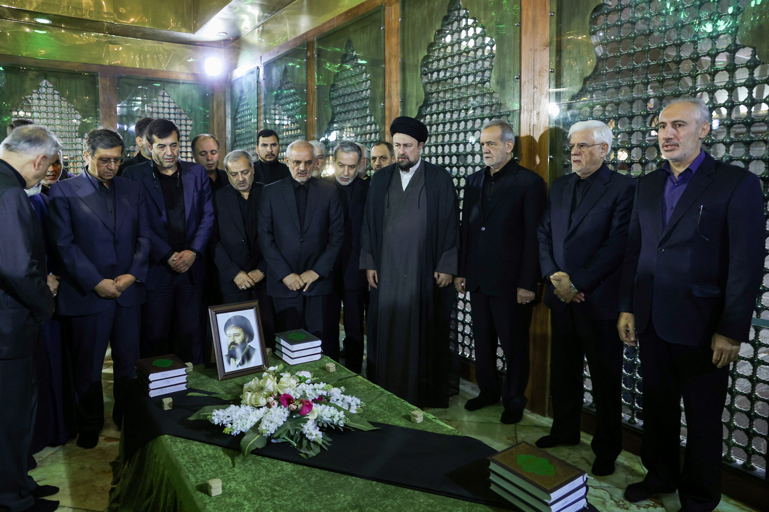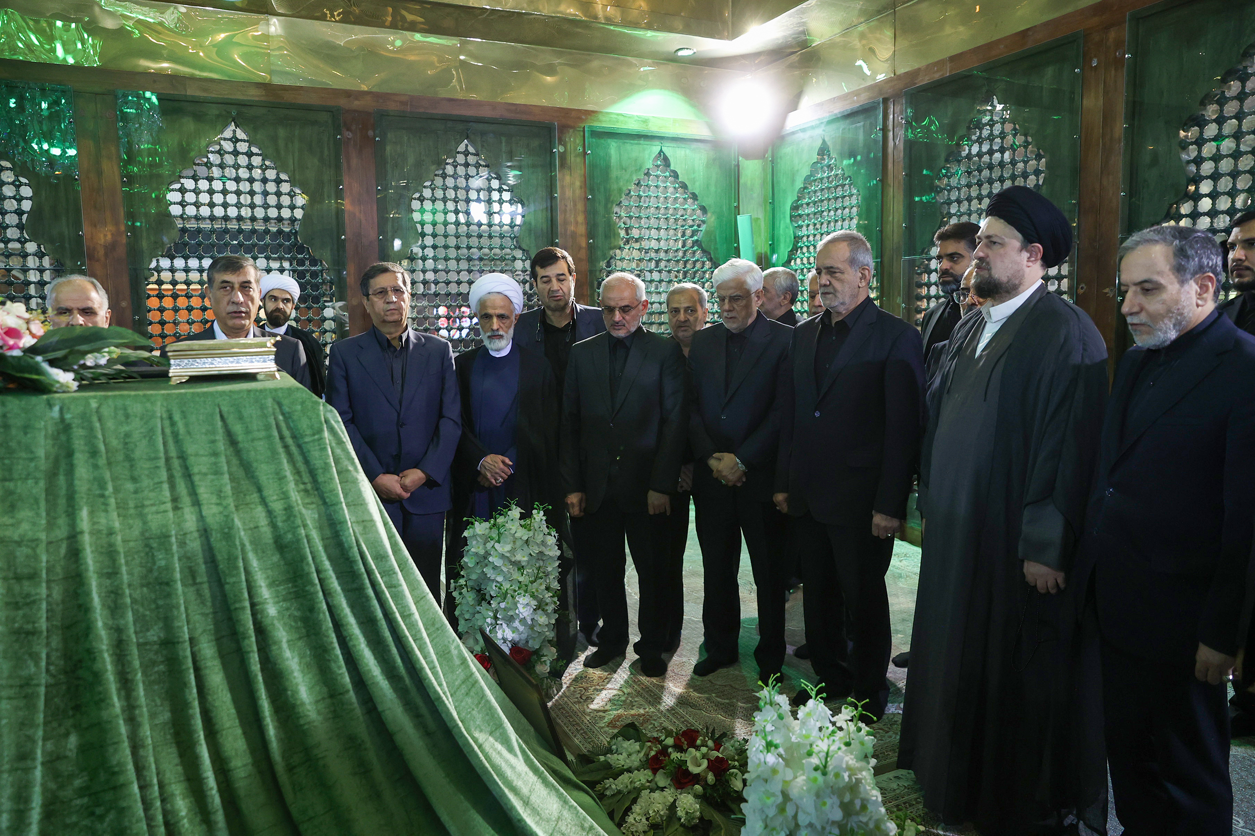 مسعود پزشکیان رئیسجمهور و اعضای هیئت دولت صبح امروز _شنبه سوم شهریور_ به مناسبت هفته دولت، با حضور در حرم مطهر امام خمینی (ره)، با قرائت فاتحه، یاد و خاطره امام راحل را گرامی داشتند.