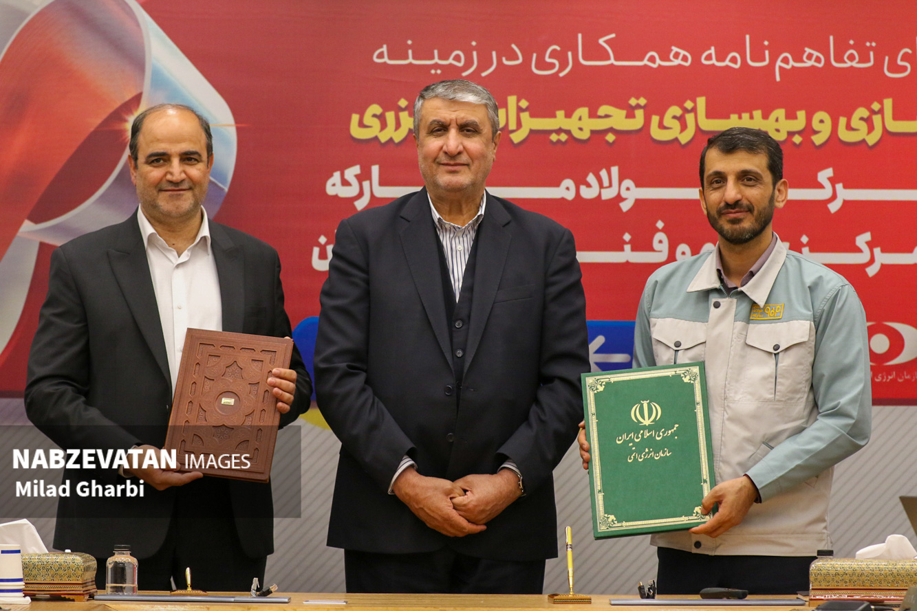 محمد اسلامی رئیس سازمان انرژی اتمی ایران صبح امروز چهارشنبه بیستودوم آذرماه به منظور شرکت در آیین رونمایی از پروژه جایگزینی لیزر فیبری بومی سازی شده و امضای سند همکاری در زمینه بازسازی و بهسازی تجهیزات لیزری مجتمع فولاد مبارکه و مرکز علوم و فنون لیزر ایران در این مجتمع حضور یافت.