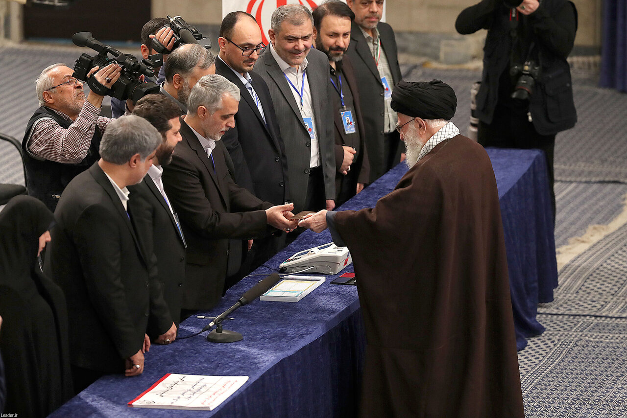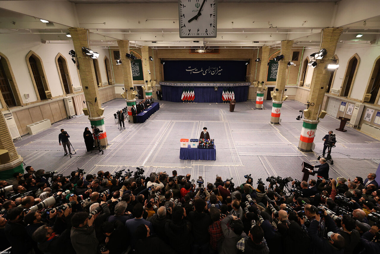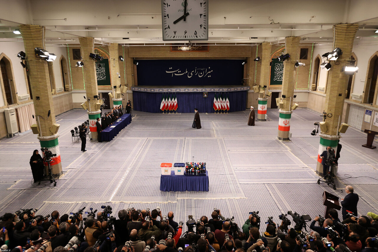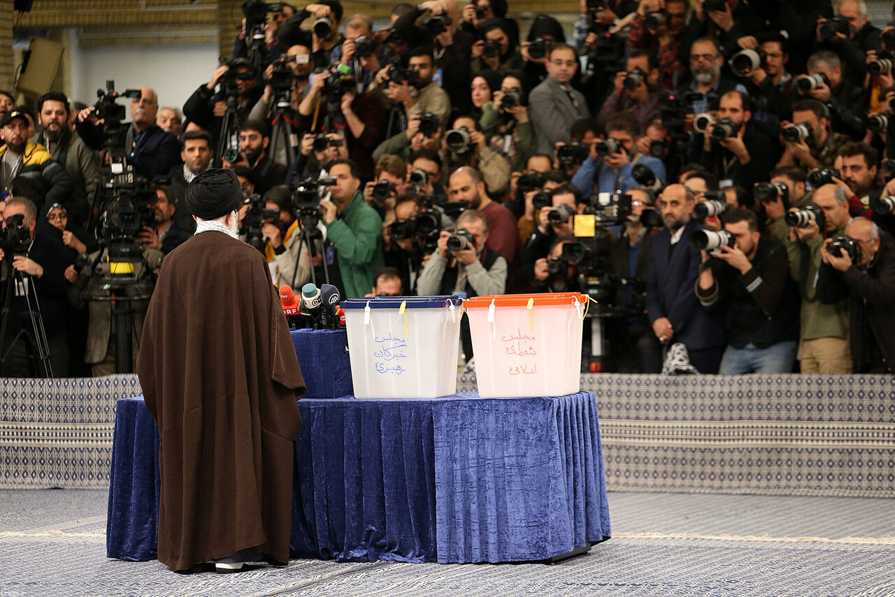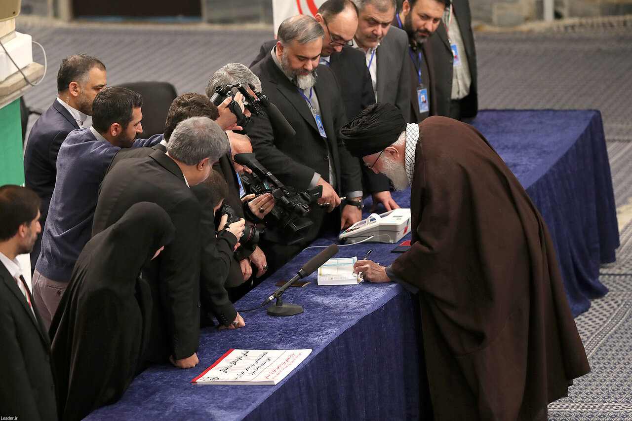 حضرت آیتالله خامنهای رهبر معظم انقلاب اسلامی صبح امروز_ جمعه یازدهم اسفند_ در اولین دقایق آغاز رأیگیری «انتخابات مجلس شورای اسلامی» و «مجلس خبرگان رهبری» در شعبه سیار ۱۱۰ حسینیه امام خمینی (ره) رأی خود را به صندوق انداختند.