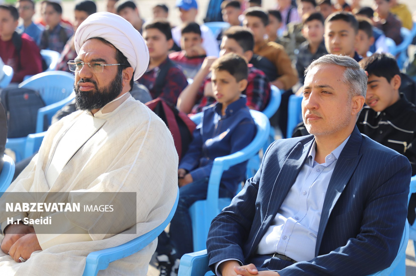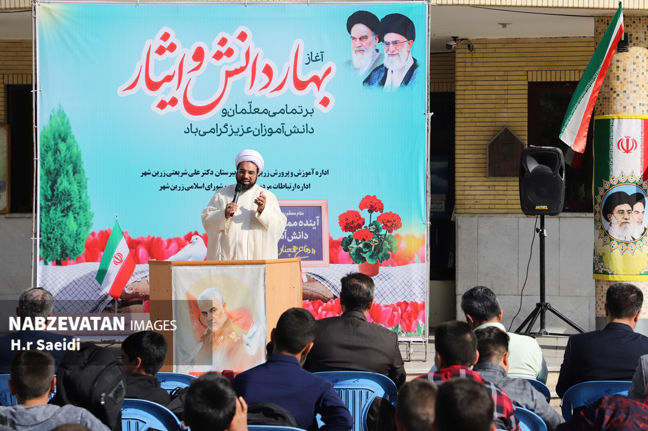 آئین نواختن زنگ مهر و مقاومت صبح امروز شنبه یکم مهرماه در مدرسه راهنمایی دکتر علی شریعتی با حضور مسئولان شهرستان لنجان برگزار شد.