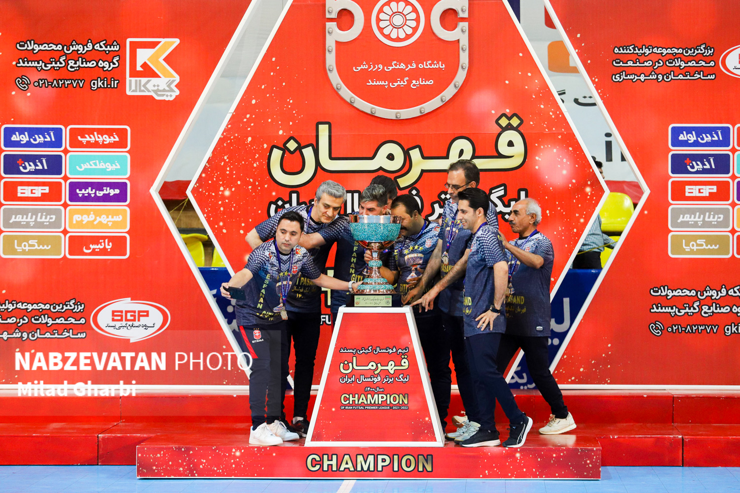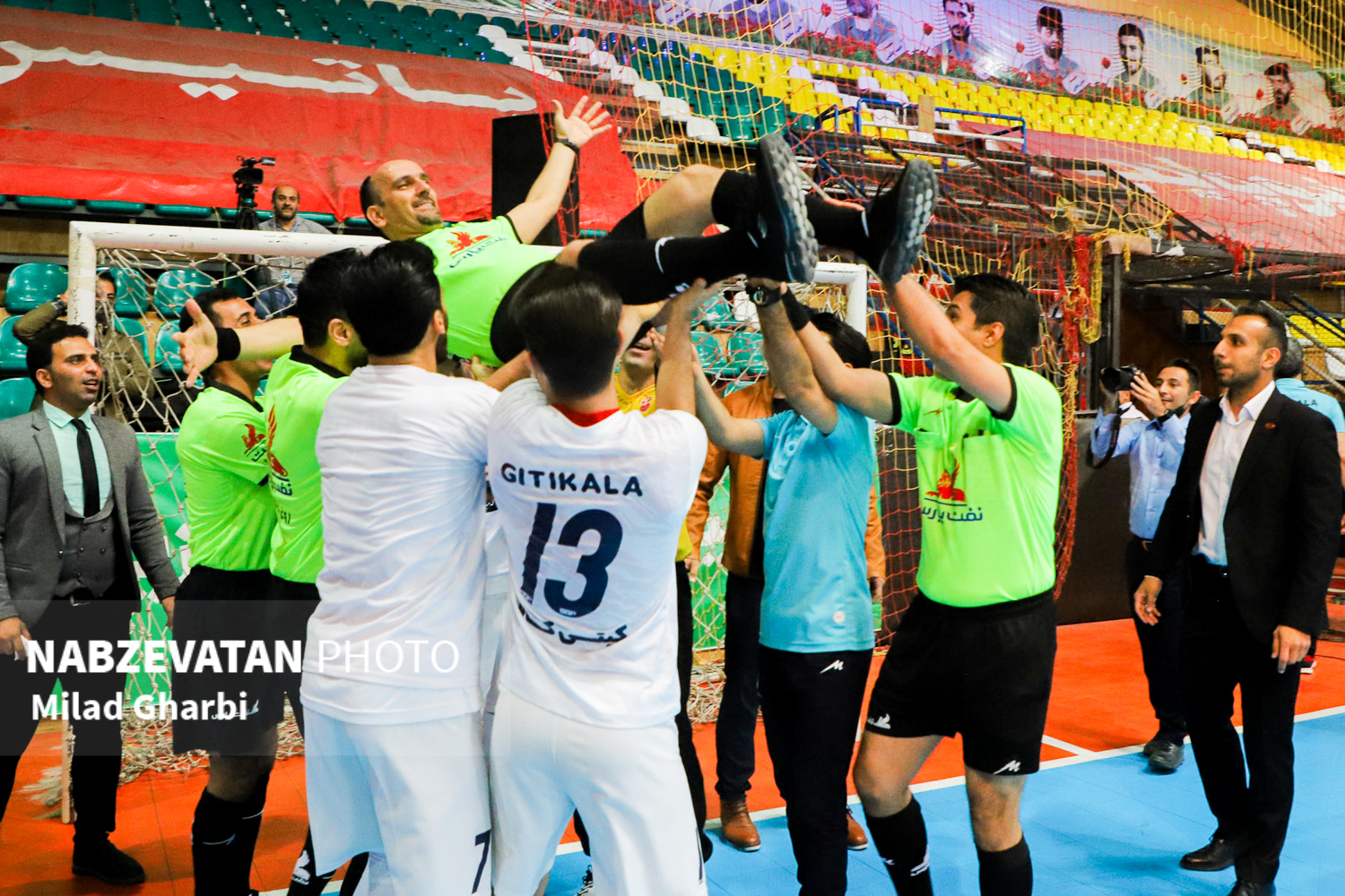 دو تیم گیتی پسند و چیپس کامل مشهد عصر امروز- جمعه ۲۰ اسفند ماه- در هفته آخر چهار رقابت لیگ برتر فوتسال،در ورزشگاه پیروزی به مصاف هم رفتند که در پایان گیتی پسند با نتیجه ۴ بر یک پیروز این دیدار شد و بهعنوان قهرمان این دوره از رقابتهای لیگ برتر فوتسال معرفی شد.