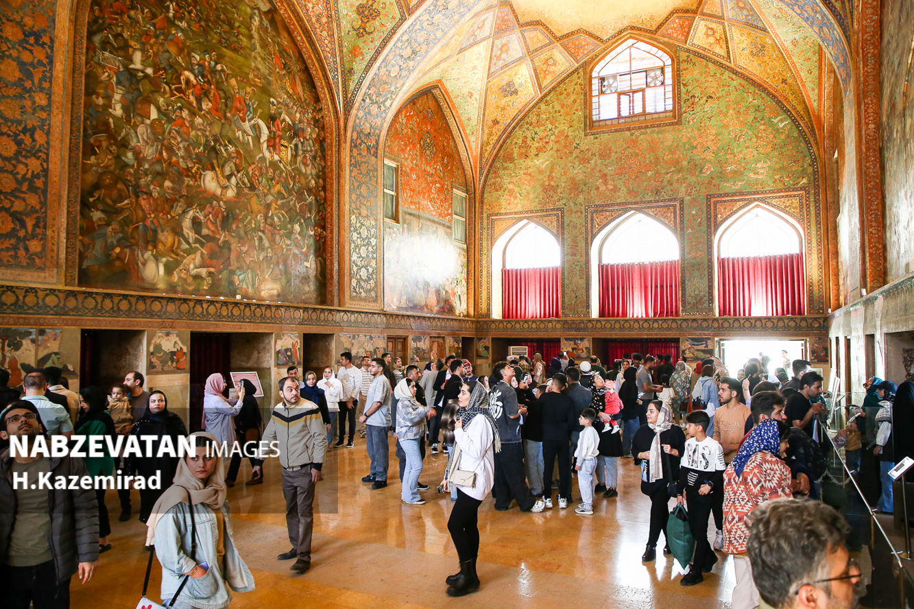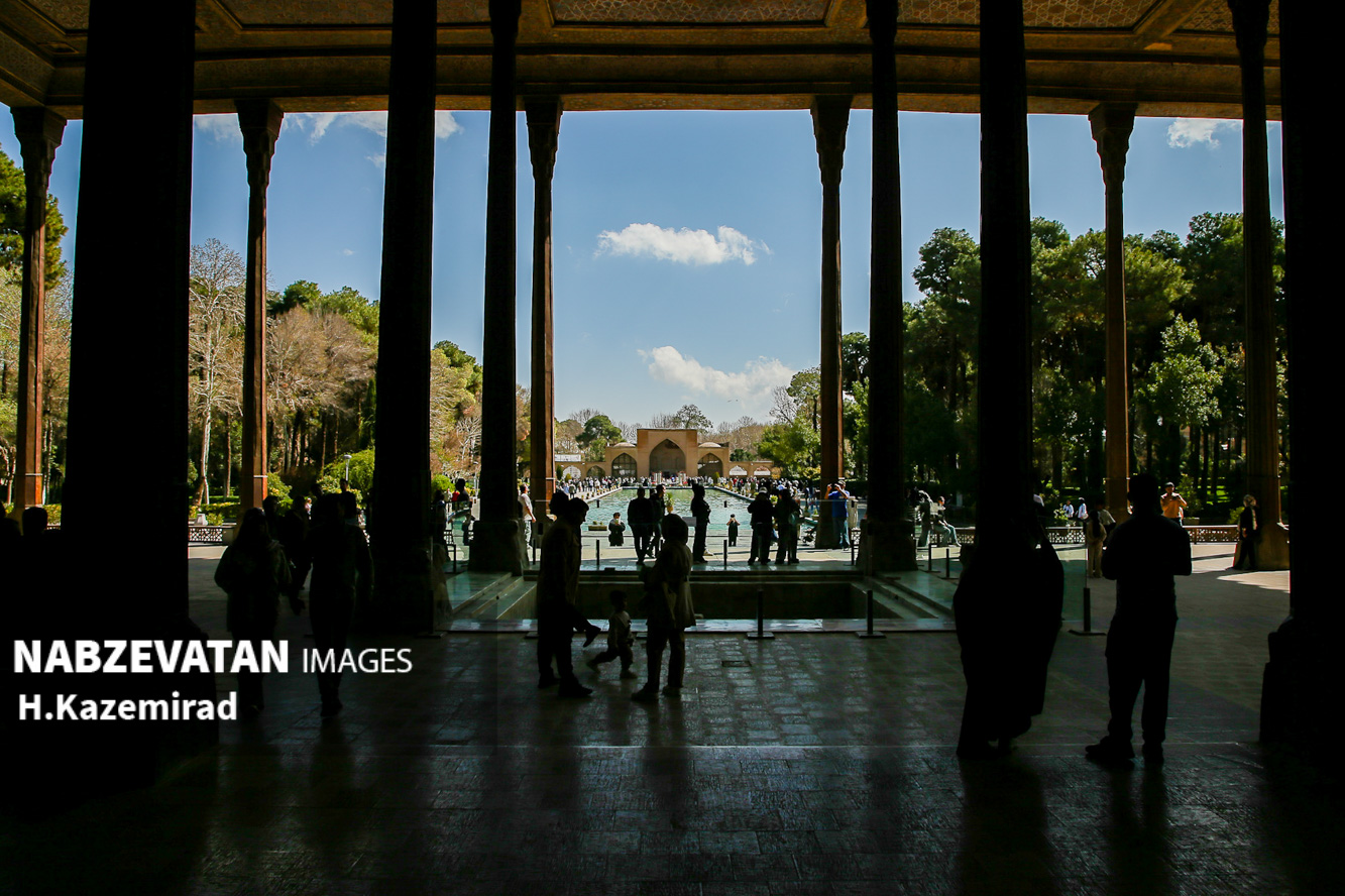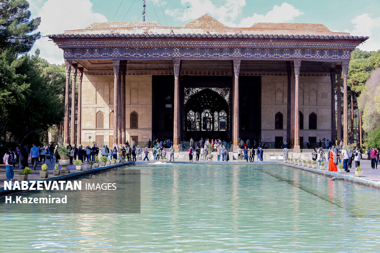 کاخ چهلستون اصفهان که در دولتخانه صفوی قرار دارد و از آثار به جا مانده از حکومت صفویان است که این روزها به یکی از مهمترین اماکن تاریخی مورد بازدید گردشگران و مسافران نوروزی مبدل شده. عمارت چهلستون یکی از ۹ باغ ایرانیست که در فهرست یونسکو به ثبترسیده است.