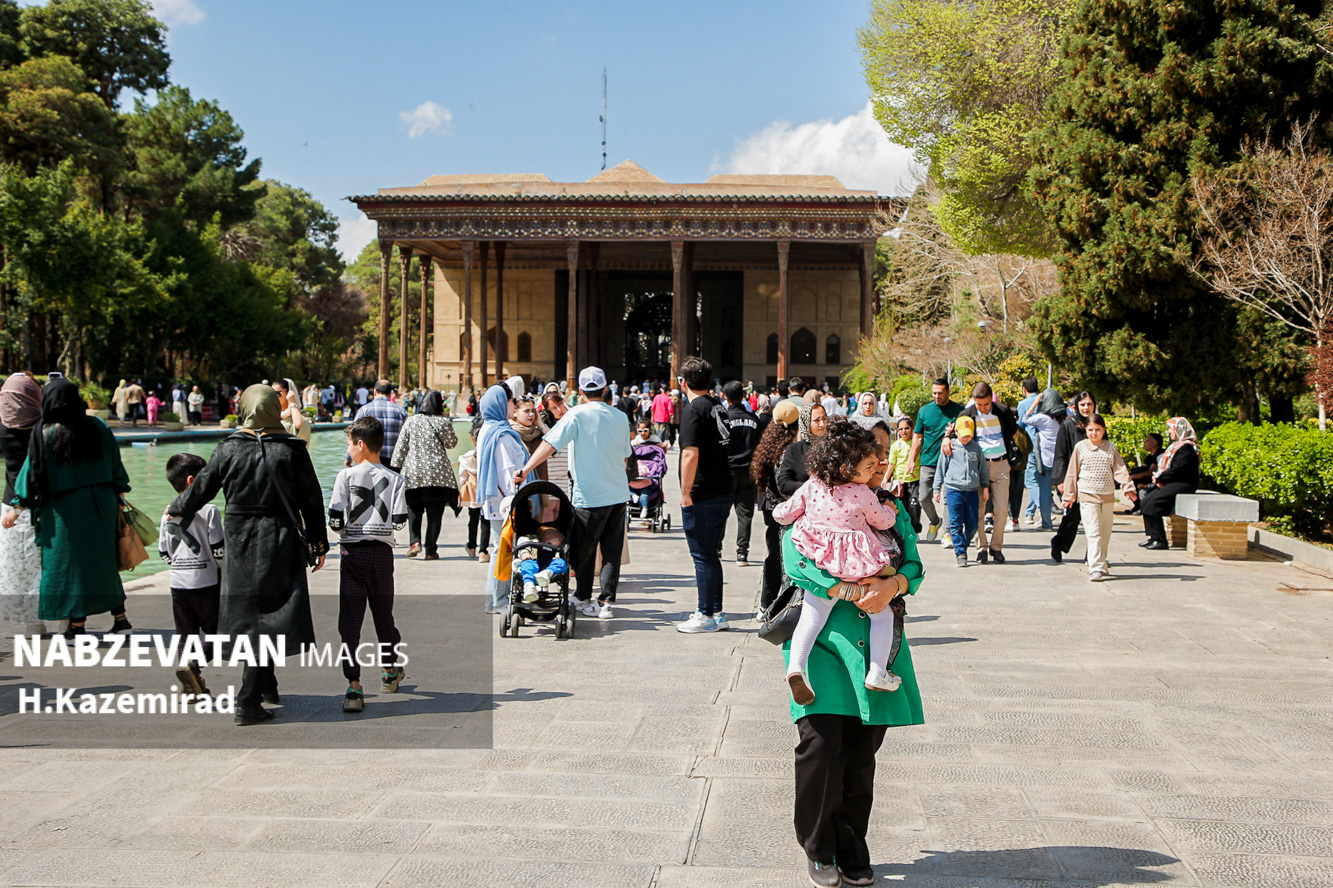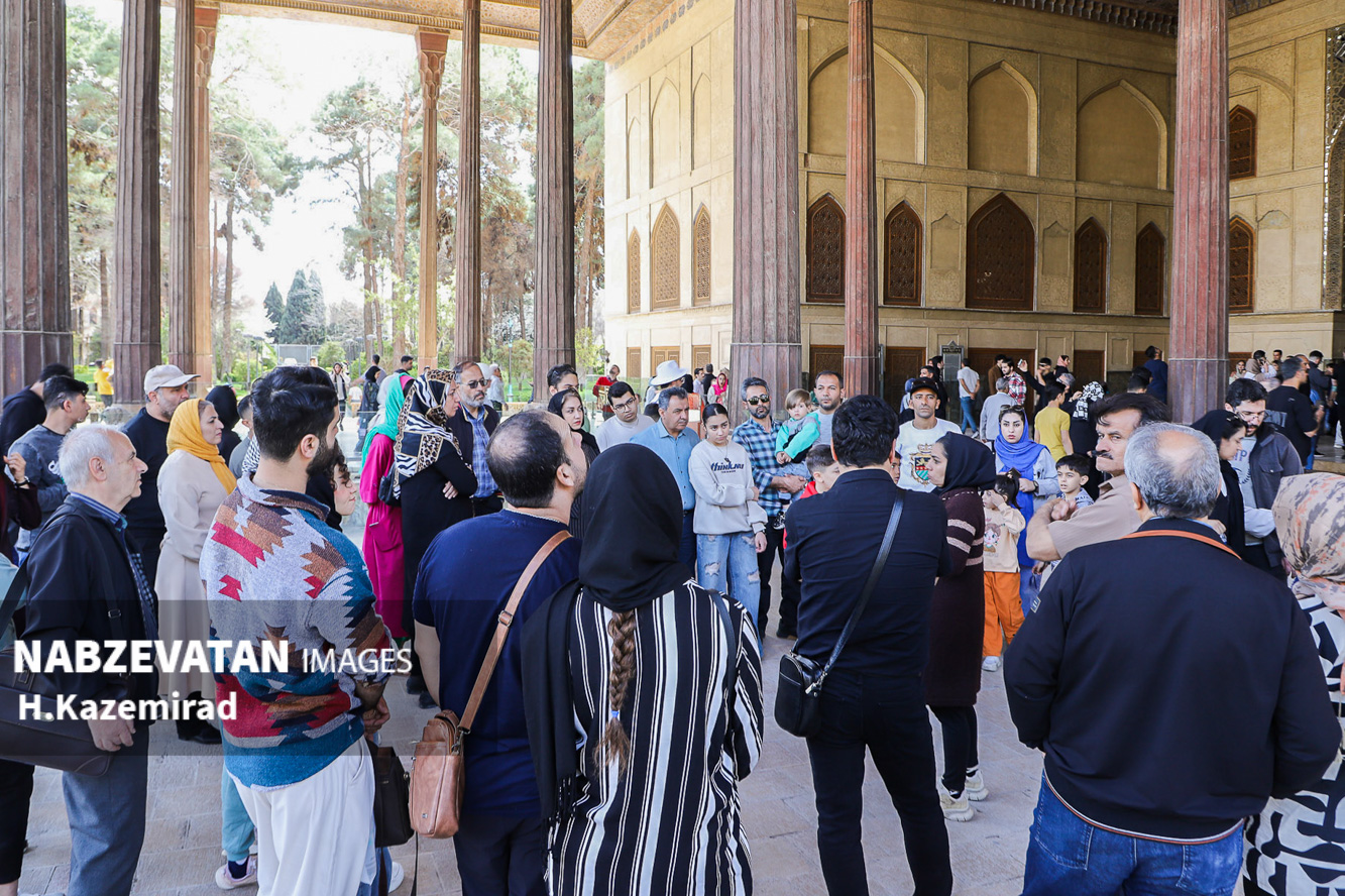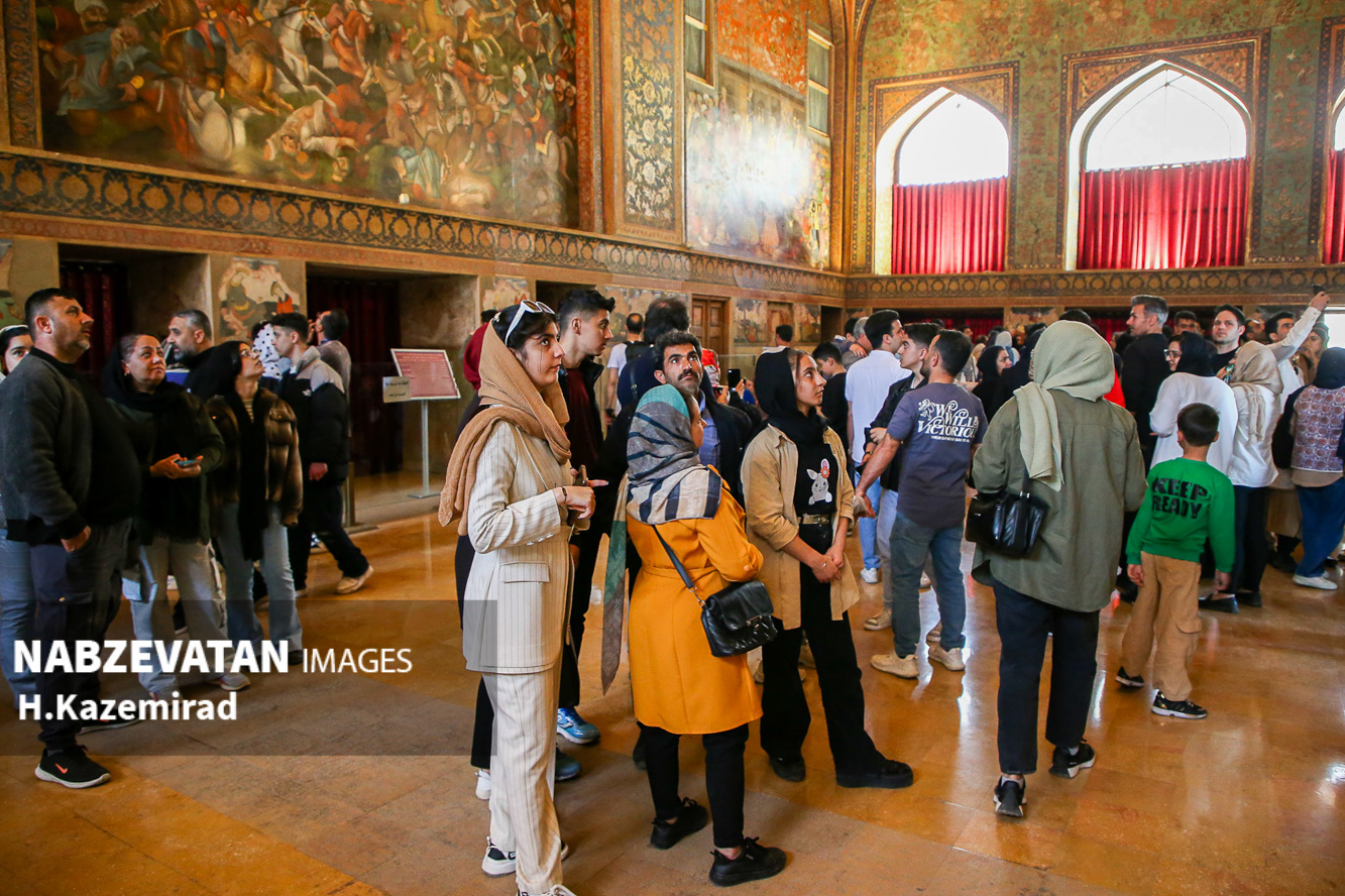کاخ چهلستون اصفهان که در دولتخانه صفوی قرار دارد و از آثار به جا مانده از حکومت صفویان است که این روزها به یکی از مهمترین اماکن تاریخی مورد بازدید گردشگران و مسافران نوروزی مبدل شده. عمارت چهلستون یکی از ۹ باغ ایرانیست که در فهرست یونسکو به ثبترسیده است.