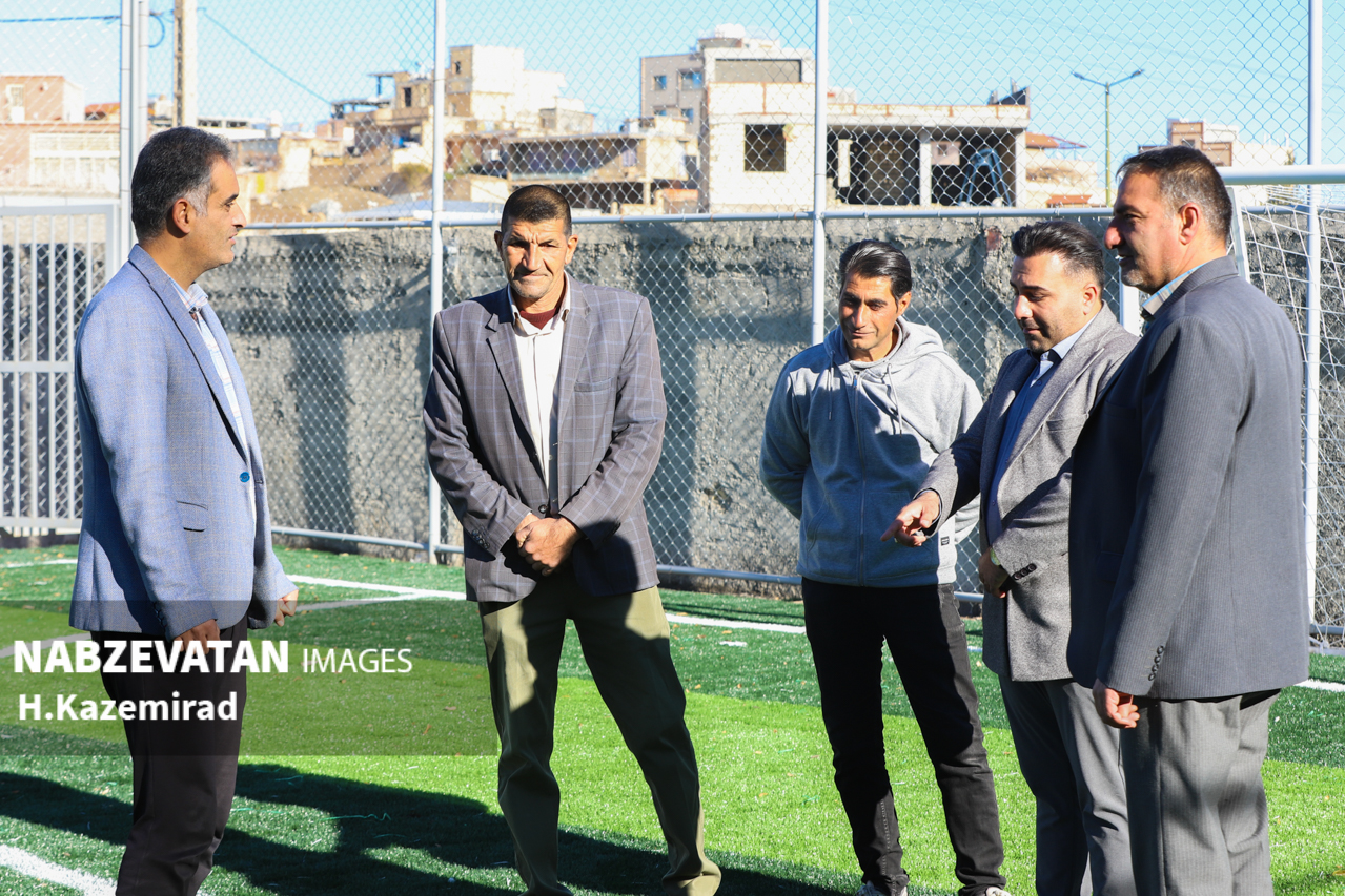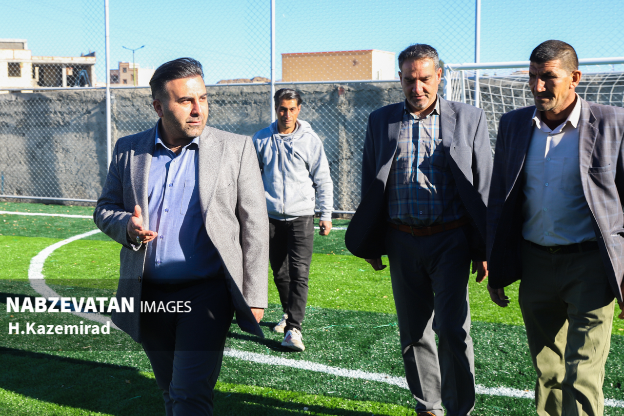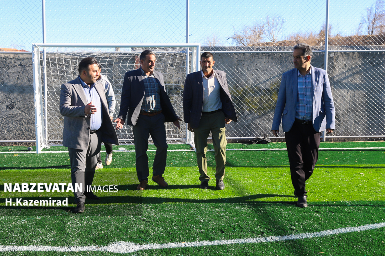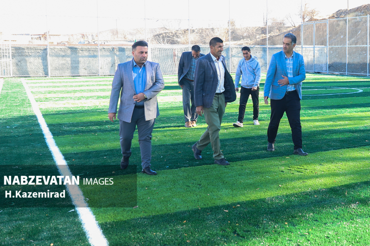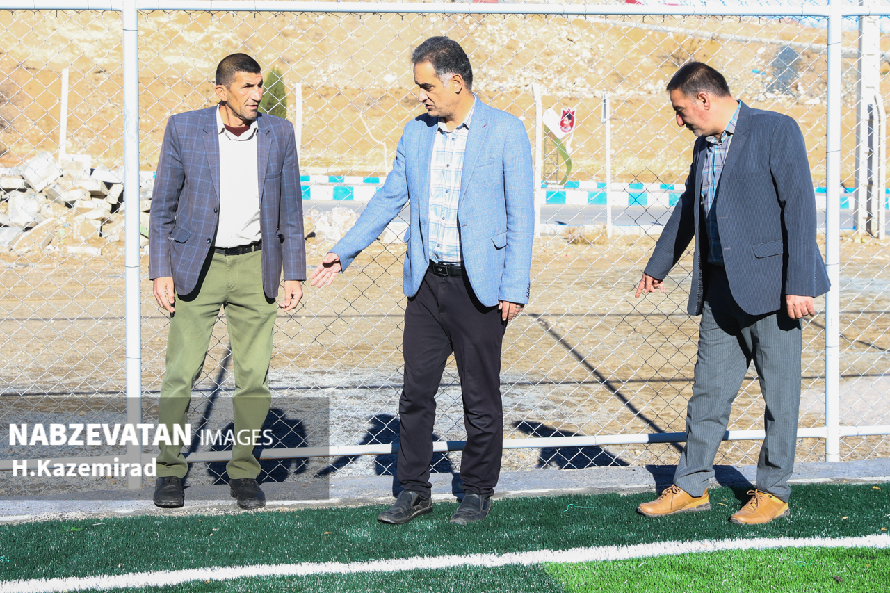 دهیار به همراه اعضاء شورای اسلامی روستای رحمت آباد و مسئول فنی این دهیاری از روند اجرای پروژه زمین چمن مصنوعی این روستا بازدید کردند.