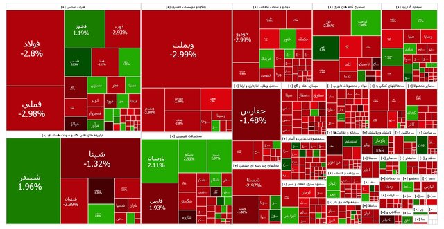 در چهارمین روز هفته تعداد سهام مثبت بورس ۶۵ عدد و سهام منفی ۲۷۲ عدد بود. به طور کلی بازار ۰.۴۲ درصد کاهش داشت.