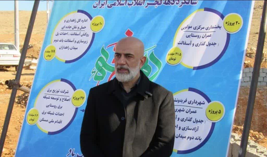 به گزارش نبض وطن، با حضور کوروش خسروی به مناسبت چهل و ششمین سالگرد پیروزی انقلاب اسلامی ۱۲۰ پروژه عمرانی شهرستان فریدونشهر با اعتباری بالغ بر ۱۶۲ میلیارد تومان افتتاح و به بهرهبرداری رسید.