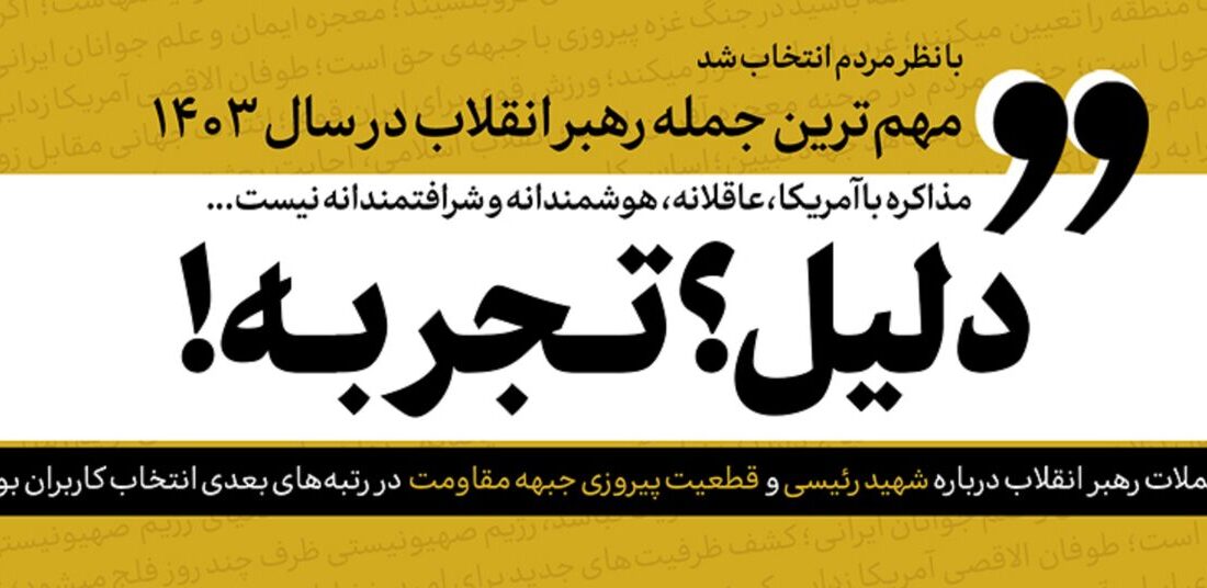 به گزارش نبض وطن، کاربران رسانه KHAMENEI.IR جمله حضرت آیتالله خامنهای در دیدار فرماندهان نیروی هوایی و پدافند هوایی ارتش در بهمن ماه امسال، درباره علّت مذاکره نکردن با آمریکا را به عنوان مهمترین جملهی رهبر انقلاب در سال ۱۴۰۳ انتخاب کردند.
