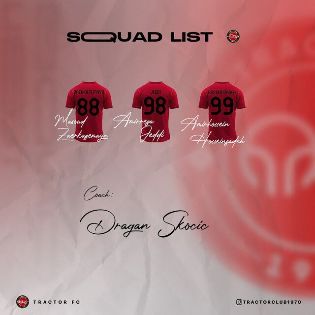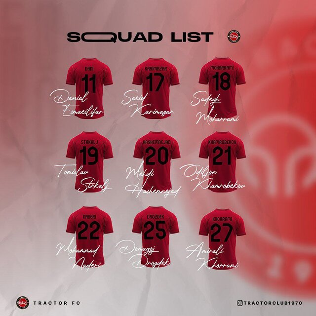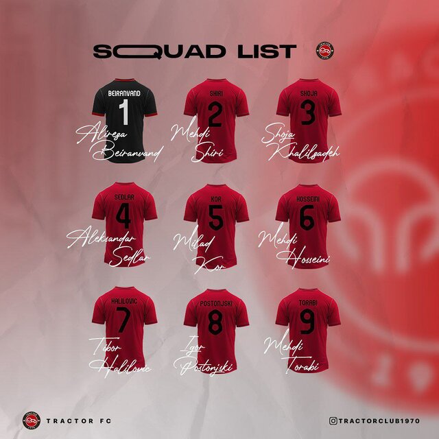 شجاع خلیلزاده همانند دو فصل اخیر پیراهن شماره سه را بر تن خواهد کرد و الکساندر سدلار با پیراهن شماره چهار به میدان خواهد رفت.