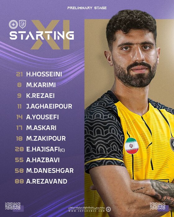 در این بازی که در ورزشگاه بینالمللی خلیفه قطر برگزار خواهد شد سپاهان با ترکیب سیدحسین حسینی، محمد دانشگر، امین حزباوی، آریا یوسفی، محمد عسگری، احسان حاج صفی، میلاد زکیپور، آرش رضاوند، جواد آقاییپور، محمد کریمی و کاوه رضایی برابر نماینده قطر صفآرایی خواهد کرد.