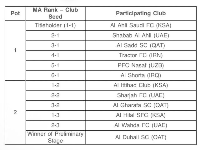 کنفدراسیون فوتبال آسیا ۱۲ تیم را در دو سید تقسیم کرده است. الهلال قدرتمند و پرستاره در سید دوم قرار دارد. این در حالی است که تراکتور، تنها نماینده ایران، در سید نخست لیگ نخبگان ایستاده است.