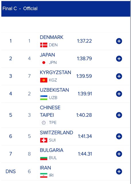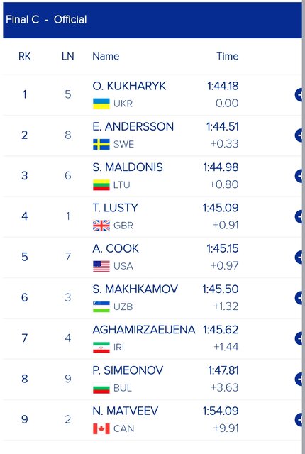 او در مجموع با برگزاری فینال A و B مسابقات، جایگاهی بهتر از بیست و پنجمی جهان به دست نمیآورد.