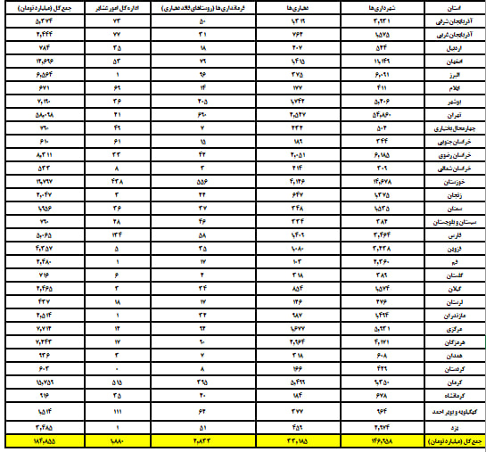 جزئیات سهم بخشهای مختلف از درامدهای مالیات و عوارض ارزش افزوده