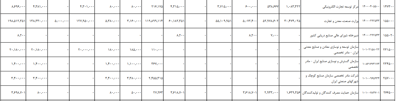 همچنین بودجه سازمان حمایت مصرف کنندگان و تولید کنندگان ۳۶۹ میلیارد و ۸۷۰ میلیون تومان، شرکت مادر تخصصی سازمان صنایع کوچک و شهرکهای صنعتی ایران ۳۴۰ میلیارد تومان، سازمان گسترش و نوسازی صنایع ایران – مادر تخصصی ۱۴۰ میلیارد تومان، مرکز توسعه تجارت الکترونیکی ۸۶۹ میلیارد و ۶۰۰ میلیون تومان، موسسه مطالعات و پژوهشهای بازرگانی ۱۶۲ میلیارد تومان، پژوهشکده علوم زمین ۶۶ میلیارد تومان و دبیرخانه شورای عالی صنایع دریایی کشور ۸۲۰ میلیون تومان عنوان شده است.