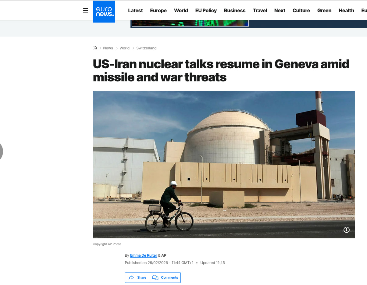 شبکه خبری یورو نیوز نیز گزارش داد: مذاکرات هستهای بین ایالات متحده و ایران روز پنجشنبه در ژنو از سر گرفته شد، سومین دیداری که از زمان از سرگیری مذاکرات در اوایل این ماه (میلادی) با میانجیگری عمان انجام شد.
