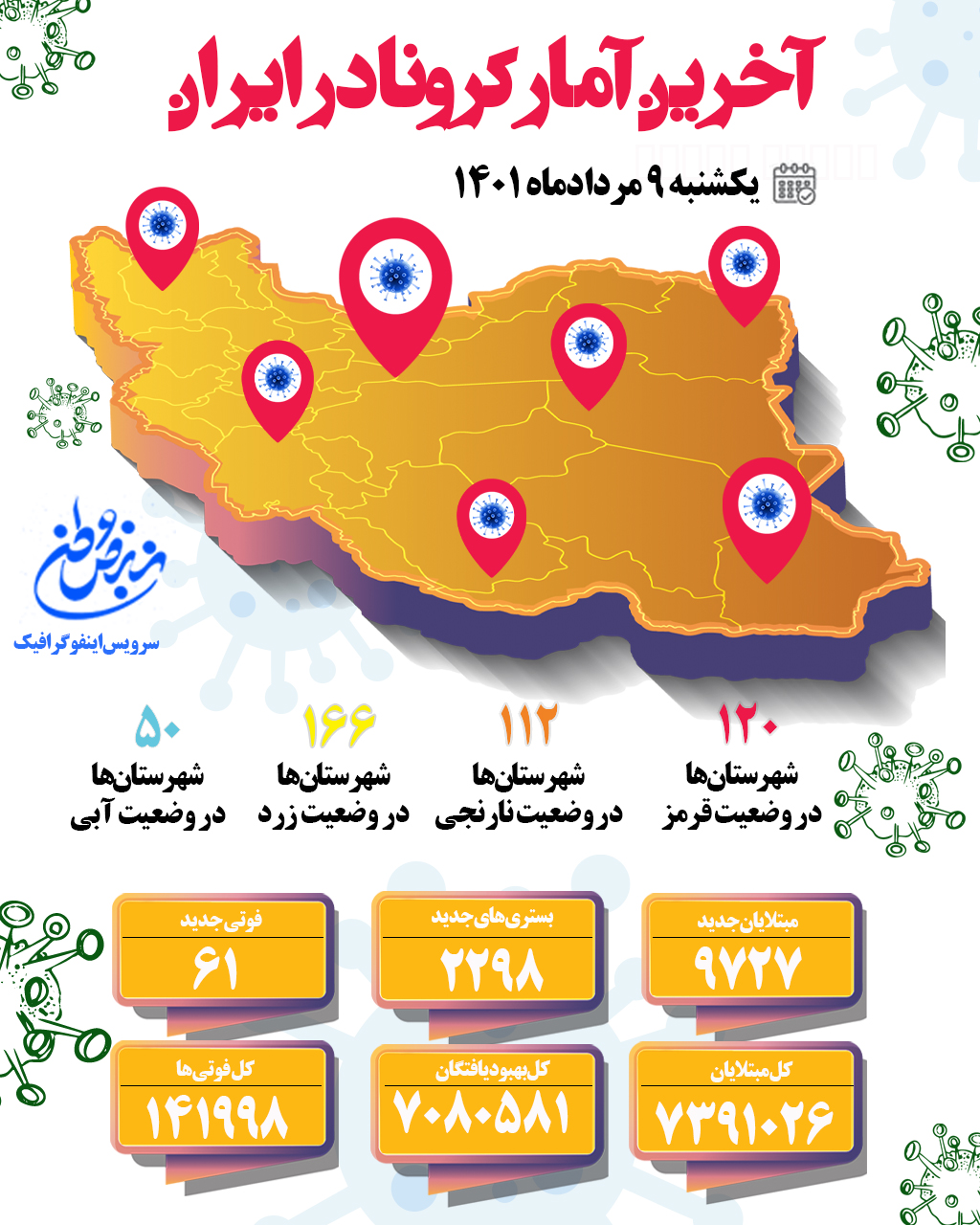 آمار کرونا امروز در ایران یکشنبه ۹ مردادماه ۱۴۰۱