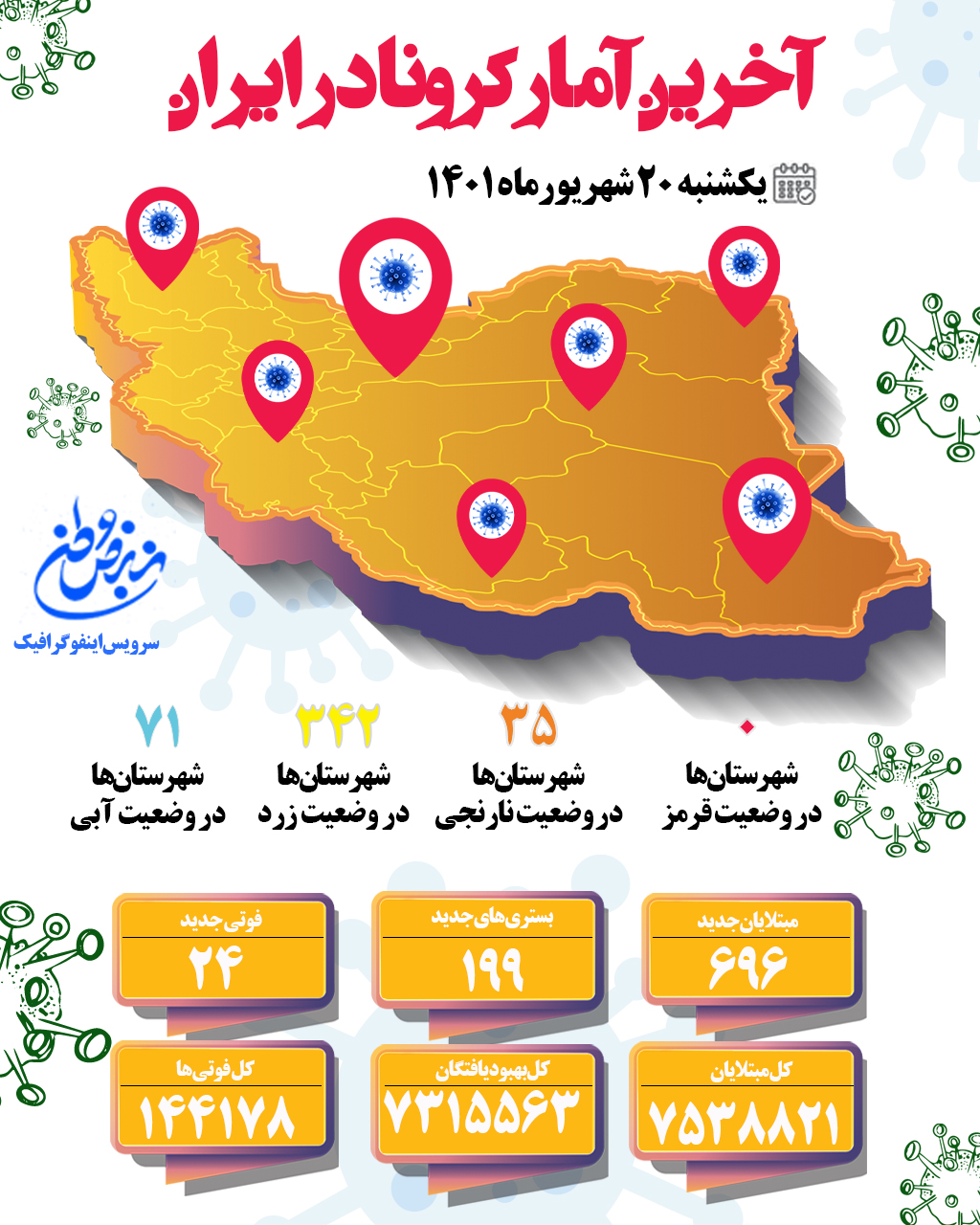 آمار کرونا امروز در ایران یکشنبه ۲۰ شهریور ۱۴۰۱