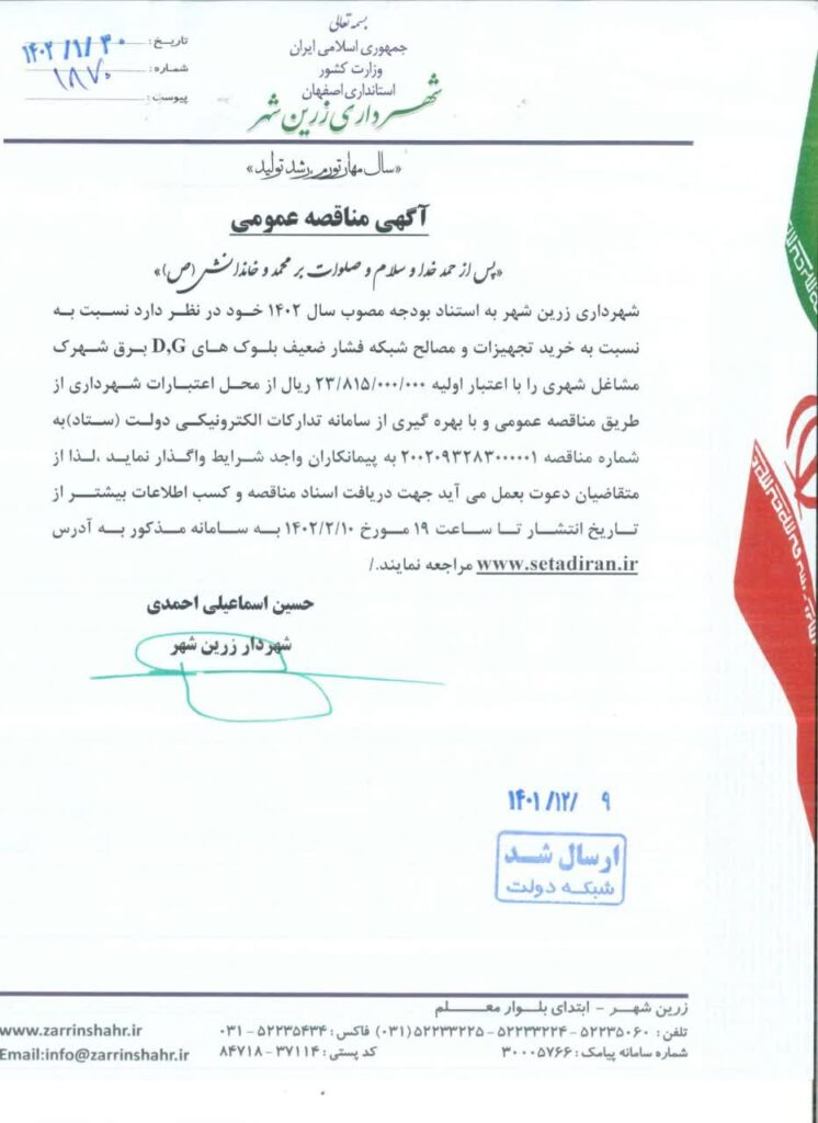 شهردار زرین شهر تصریح کرد: بر اساس ارزیابیهای صورت گرفته اجرای پروژه برق فشار ضعیف شهرک مشاغل کارگاهی حدود ۱۰۰ میلیارد ریال هزینه در بر دارد از این رو با لایحه شهرداری و موافقت شورای اسلامی زرین شهر یک قطعه پلاک از سه پلاک مد نظر، توسط مدیریت شهری به مزایده گذاشته شد تا با تأمین اعتبار مورد نیاز این پروژه نیز با سرعت هرچه بیشتر اجرایی شود.
