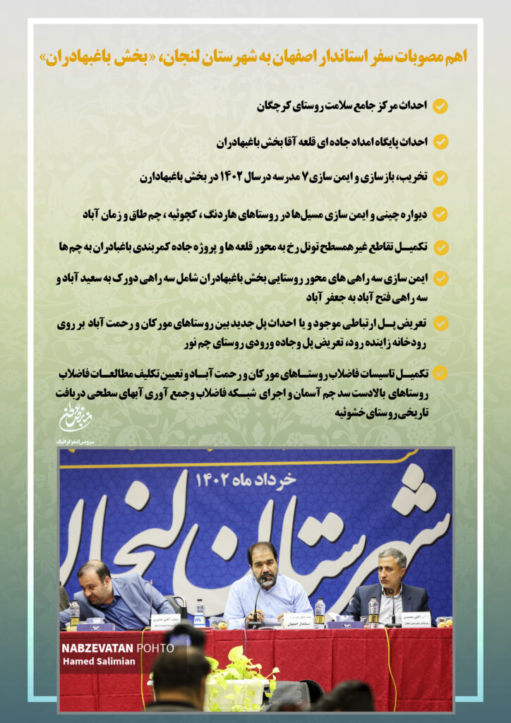 اهم مصوبات سفر استاندار به شهرستان لنجان، روستاهای بخش باغبهادران