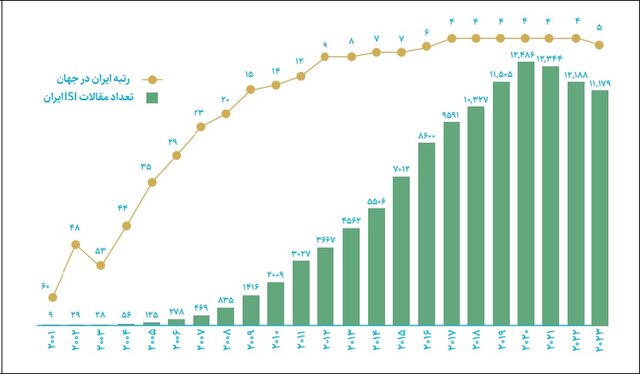 در سال ۲۰۲۳ میلادی، ۱۱ هزار و ۱۷۹ مقاله مرتبط با فناوری نانو توسط محققان ایرانی در WoS نمایه شد که معادل ۴.۶ درصد از کل مقالات نانو منتشر شده در سال ۲۰۲۳ است. ایران با این سهم از انتشارات نانو، با یک پله افت، در رتبه پنجم جهان قرار گرفت. این جایگاه در حالی به دست آمده که ایران در سال ۲۰۰۰ و قبل از تأسیس ستاد توسعه فناوری نانو که تعداد معدودی از محققان و دانشمندان ایرانی با این فناور ی نوظهور آشنا بودند، با انتشار ۸ مقاله نانو در رده «پنجاه و هشتم» جهان و «ششــم» منطقه خاورمیانه قرار داشت.