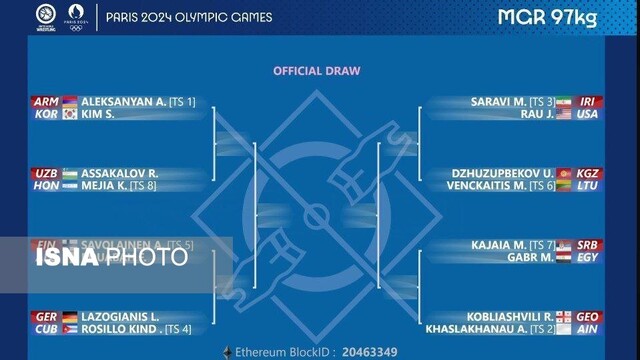 در وزن ۹۷ کیلوگرم، محمد هادی ساروی در دور نخست به مصاف رائو از آمریکا می رود و در صورت پیروزی در یک چهارم نهایی به مصاف برنده ژوزوپبکوف از قرقیزستان و ویکانتیس از لیتوانی می رود.