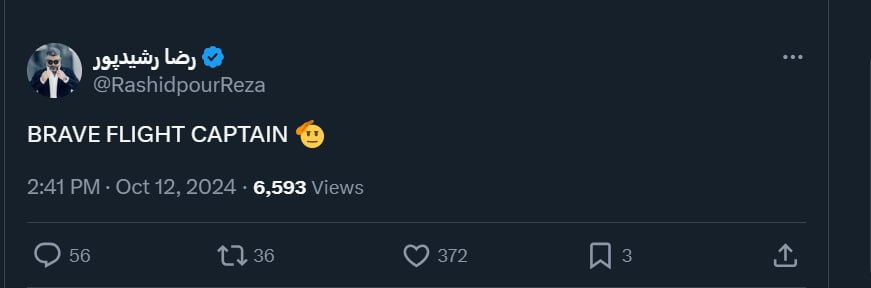 به گزارش نبض وطن، رضا رشیدپور مجری تلویزیون به این پرواز واکنش نشان داد و در توئیتر نوشت: