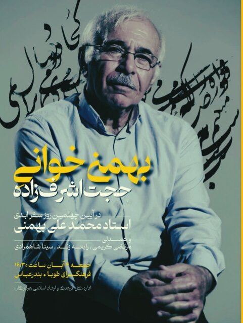 آیین چهلم زندهیاد استاد محمدعلی بهمنی ساعت ۱۶:۳۰ روز جمعه (چهارم آبان ماه) در فرهنگسرای طوبی واقع در بلوار آیتالله غفاری بندرعباس برگزار میشود.