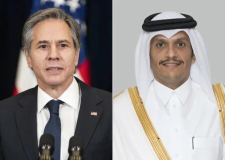 وزیران خارجه قطر و آمریکا درجریان تماسی تلفنی با یکدیگر تحولات غزه و تلاشهای میانجیگران درراستای حصول آتشبس را مورد بررسی قرار دادند.