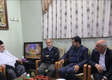 دکتر مسعود پزشکیان رئیسجمهوری اسلامی ایران روز پنجشنبه در جریان سفر به قم با حجت الاسلام و المسلمین شهرستانی نماینده آیت الله سیستانی در ایران، دیدار کرد.